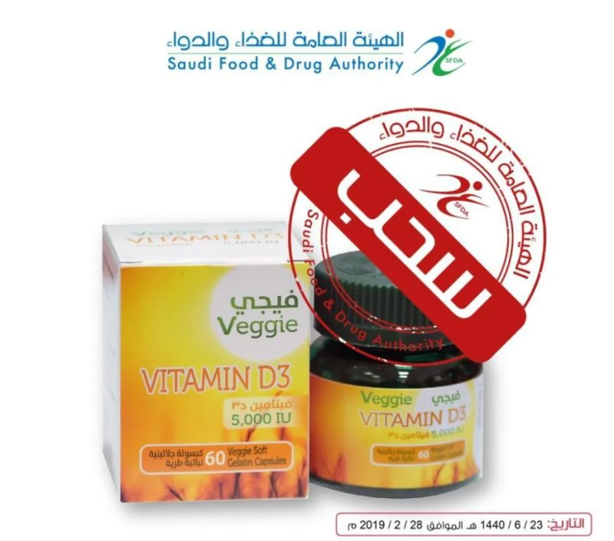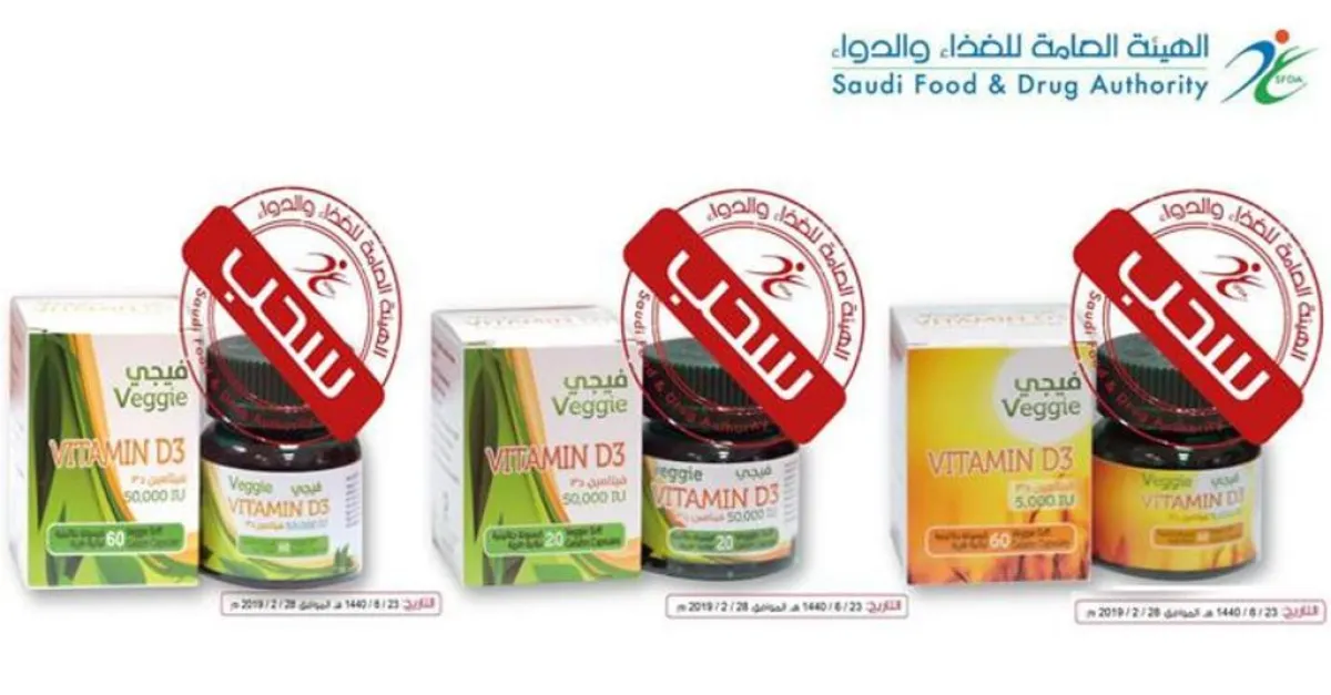 أما المنتج الثاني فيحمل الاسم التجاري VEGGIE VITAMIN D3 50000 I.U. Soft Gelatin Capsule والاسم العلمي VITAMIND3 (CHOLECALCIFEROL)، فيما يحمل المنتج الثالث الاسم التجاري VEGGIE Vitamin D3 5,000 IU، والاسم العلمي VITAMIN D3 (CHOLECALCIFEROL).