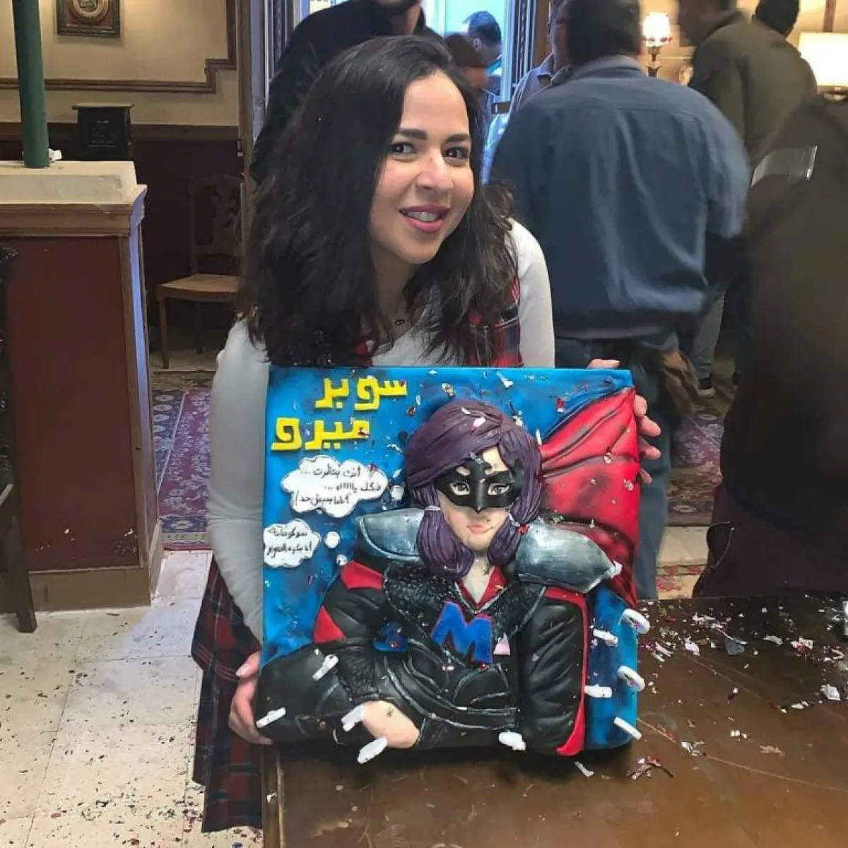 إيمي سمير غانم حرصت على طباعة بوستر مسلسلها الجديد "سوبر ميرو" على كعكة عيد الميلاد، كما تم وضع عدة صور لها بمفردها وأخرى برفقة زوجها حسن الرداد ووالدتها وشقيقتها عبر ديكور خاص في الاحتفال، وشاركها الحفل نجم فرقة مسرح مصر وبطل مسلسلها حمدي الميرغني، والمنتجة شهد رمزي وزوجها المنتج كريم السبكي، وهنادي ابنة الفنانة فيفي عبده.