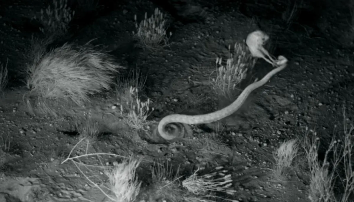 والتقطت الكاميرات لحظة هروب الفأر من الأفعى التي تضرب فريستها في أقل من 100 ميل في ثانية، أي أسرع من رمشة العين. حيث أن ما شاهده العلماء كان قد وضعهم في حيرة شديدة، بسبب قدرة الفئران على الدفاع عن نفسها في مثل هذه الحالات. إلا أن قيامها بركلات مشابهة، يعد أمراً جديداً واستثنائياً بالنسبة إلى الباحثين.