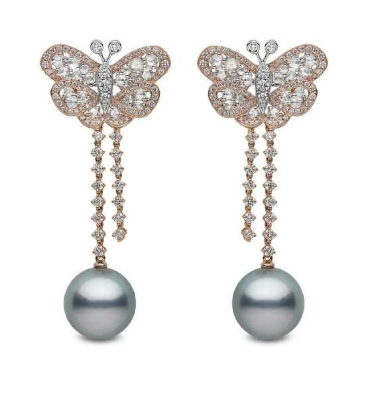 وبعيداً عن اللون الأبيض، ظهرت بعض أقراط اللؤلؤ باللون الرمادي، لتمنح العروس إطلالة مميزة ولافتة، مثل أقراط بوتشيلاتي Buccellati، ويوكو لندن Yoko London.