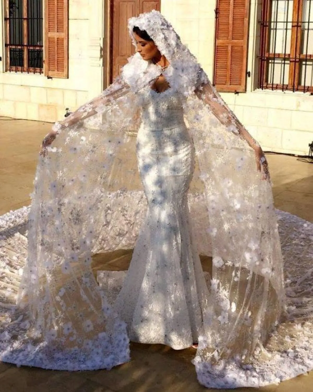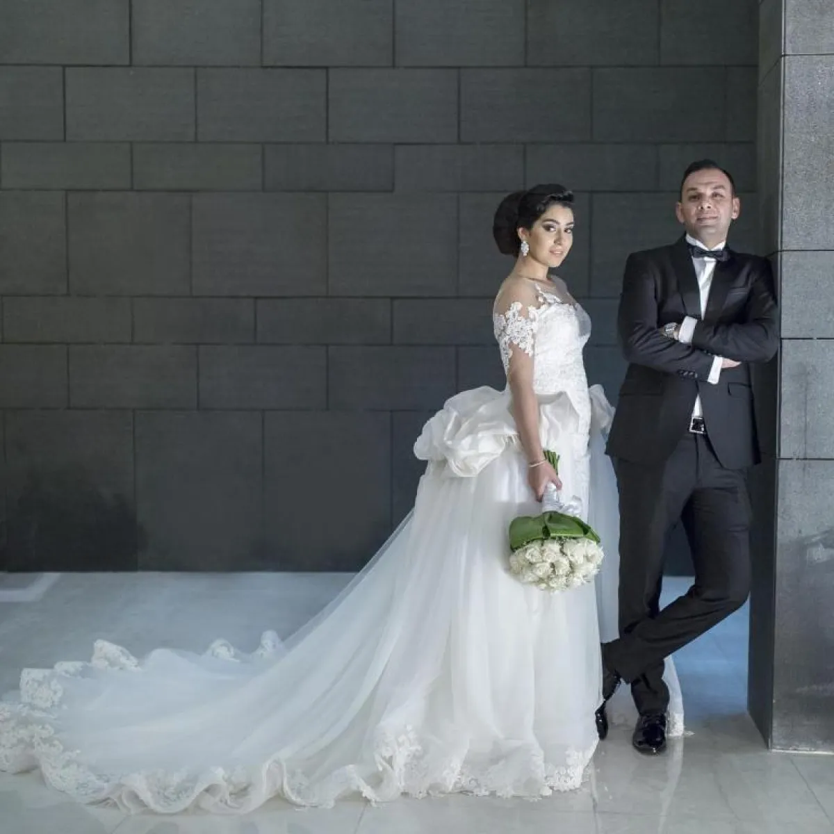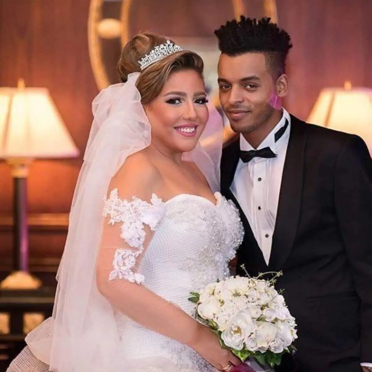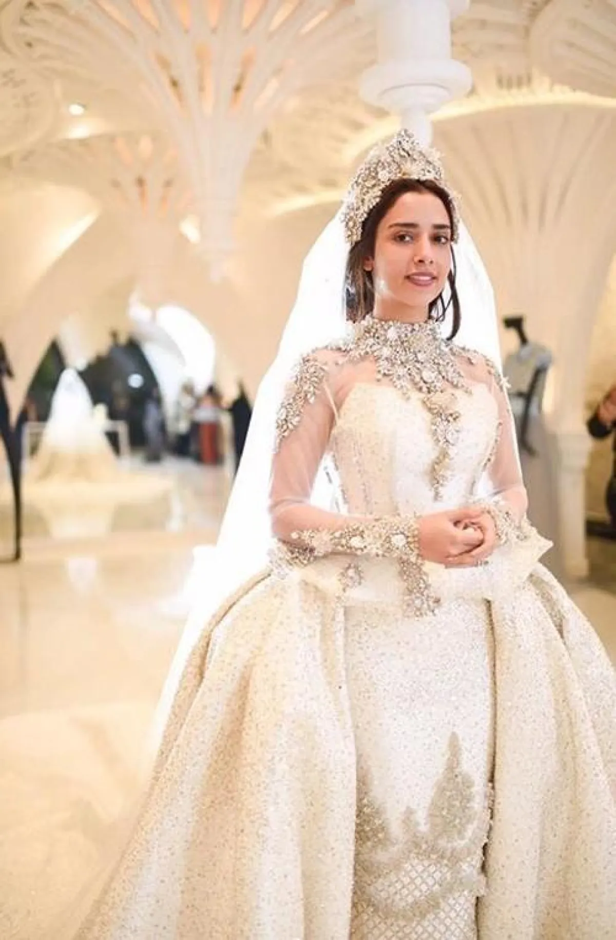 النجمة بلقيس فتحي بدت غريبة بـ فستان زفافها بسبب أكمامه والتاج الغير مناسب لإطلالتها مع فستان زفافها.
