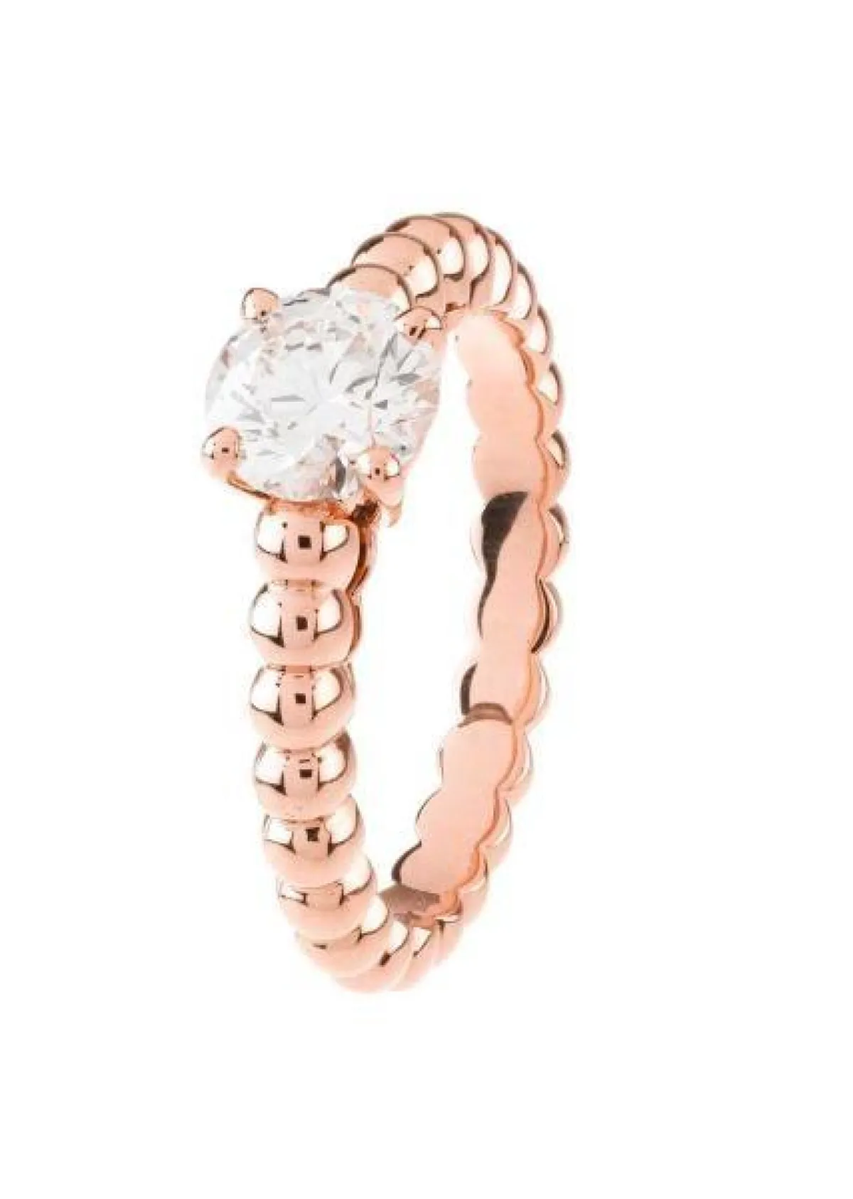 أيضاً تجمع خواتم دي بيرز De Beers بين الفخامة والبساطة، سواء بالذهب الأبيض أو الذهب الوردي مع فص الألماس.