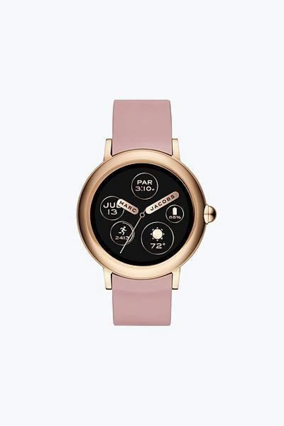 أيضاً تنوعت موديلات ساعات مارك جاكوبس marc Jacobs الرياضية لترضي مختلف أذواق النساء، سواء التصميم الدائري بالسوار الوردي، أو التصميم الجديد المميز بالألوان النابضة بالحيوية كالوردي والأزرق.