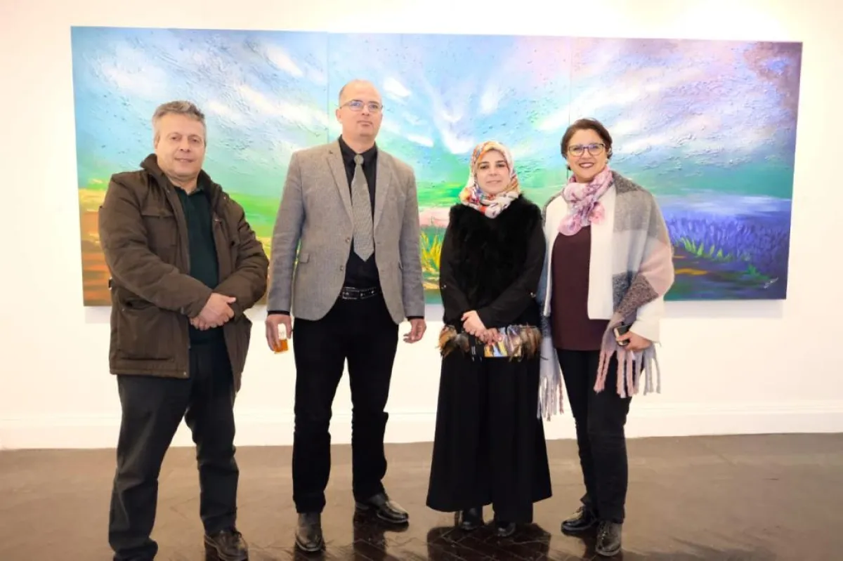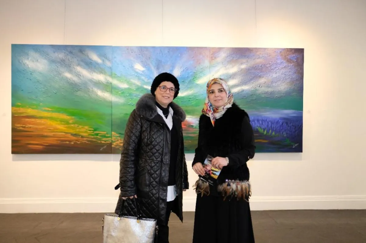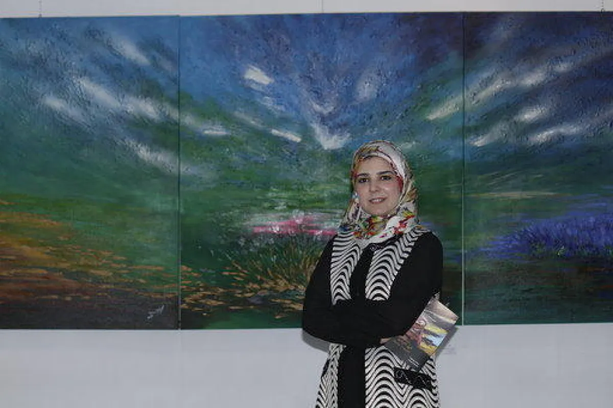 سلوى مع إحدى لوحات نسرين