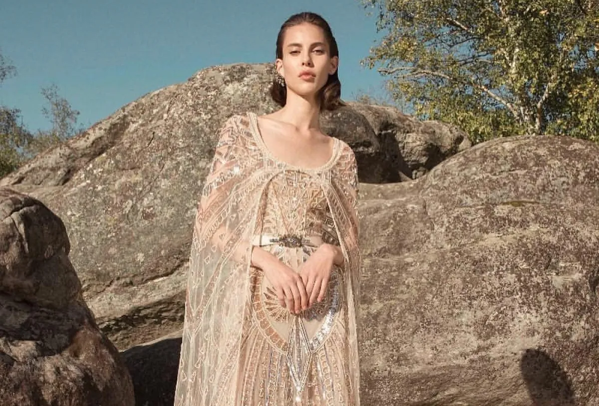 تصاميم الكاب نراها بشكل كبير في الكثير من فساتين زهير مراد، وتناسب المحجبات أيضًا، لأنها تغطي منطقة الأكمام، حتى وإن اعتمدت معها بطانة سميكة لن تكون سيئة مع الكاب المنسدل، كهذا الفستان الكريمي بالتطريزات البوهيمية، وحزام الخصر، اختاريه مع حجاب باللون الأوف، وشوز باللون النود البيج أو الكريمي.