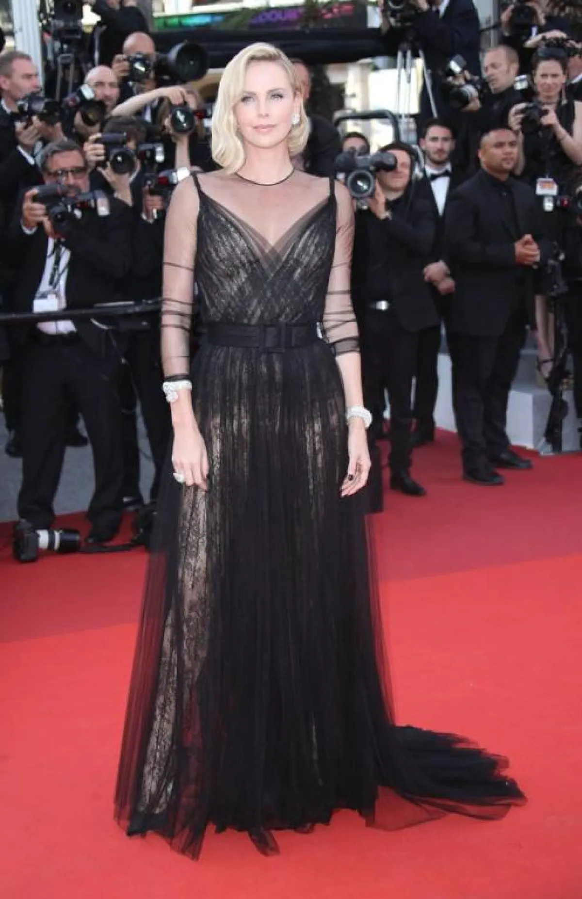 فستان أسود من التول خيار تشارليز ثيرون على السجادة الحمراء: