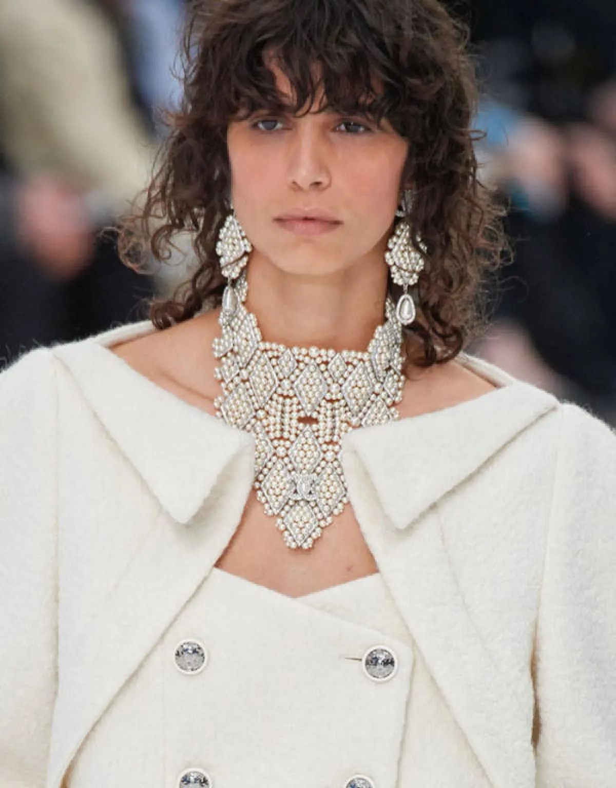 قدمت دور الأزياء مجموعة من التصاميم البارزة والضخمة، والغريبة أيضًا، سيطر عليها جنون الفن. ظهر شوكر من أسنان معدنية بارزة، كذلك ظهرت بعض القلادات التي غطت الصدر بالكامل، ولهواة الاكسسوار العصري، يمكنكِ اقتناء سلاسل متشابكة تصل إلى الطول الذي تفضلينه.