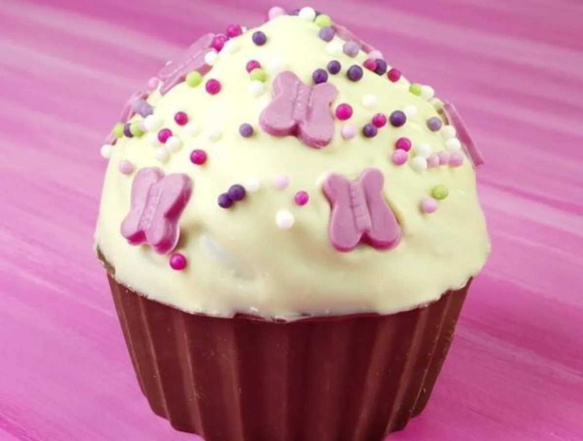 3- يتمّ إخراج شكل مشابه لهيكل الفراشة من المخروط، مع نثر حبّات التزيين الملوّنة الصغيرة بين الجناحين.