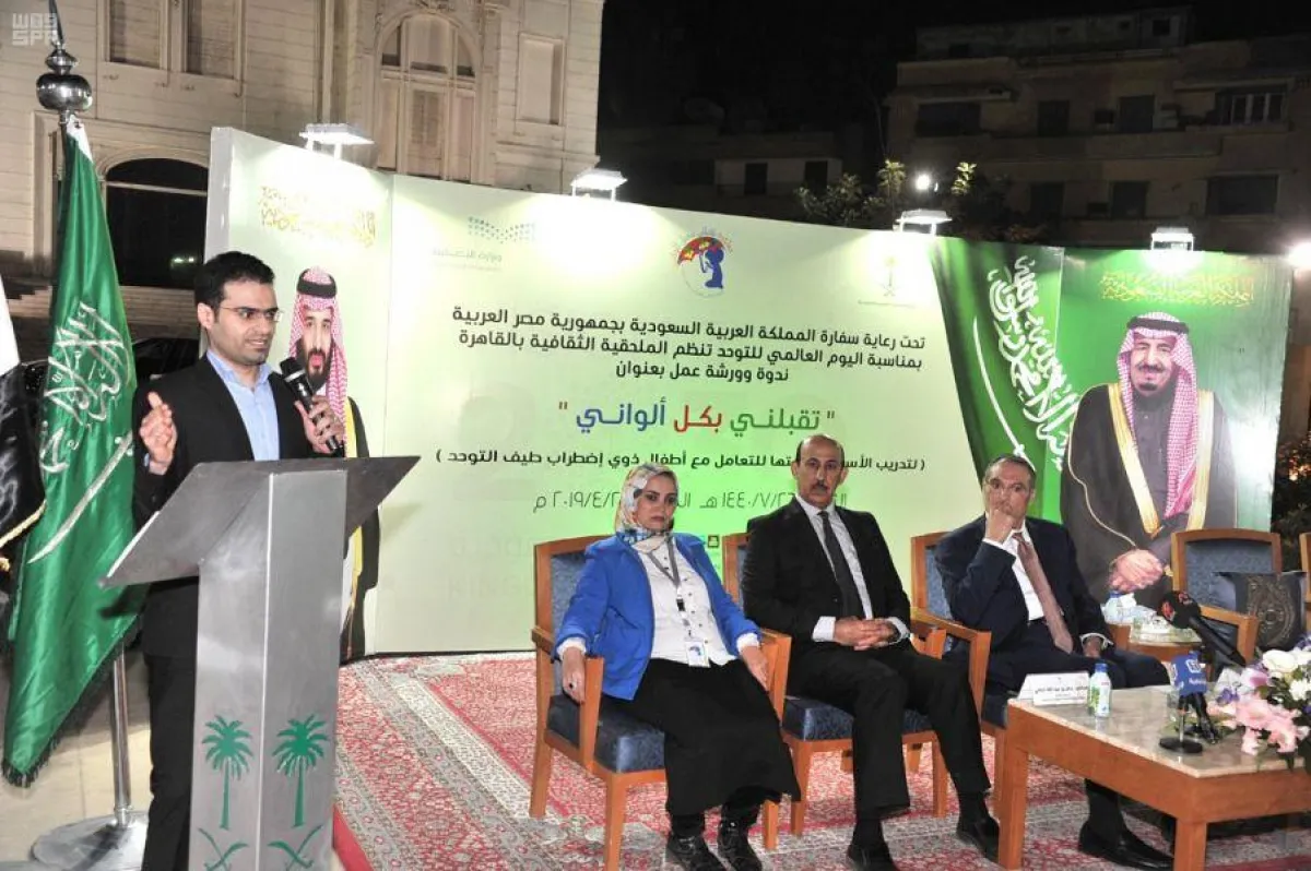 أقامت سفارة المملكة العربية السعودية في مصر، ندوة وورشة عمل توعوية لكيفية التعامل مع الأطفال ذوي اضطراب طيف التوحد بعنوان «تقبلني بكل ألواني»، بمناسبة اليوم العالمي للتوحد، وذلك بحضور سفير خادم الحرمين الشريفين بمصر أسامة بن أحمد نقلي.