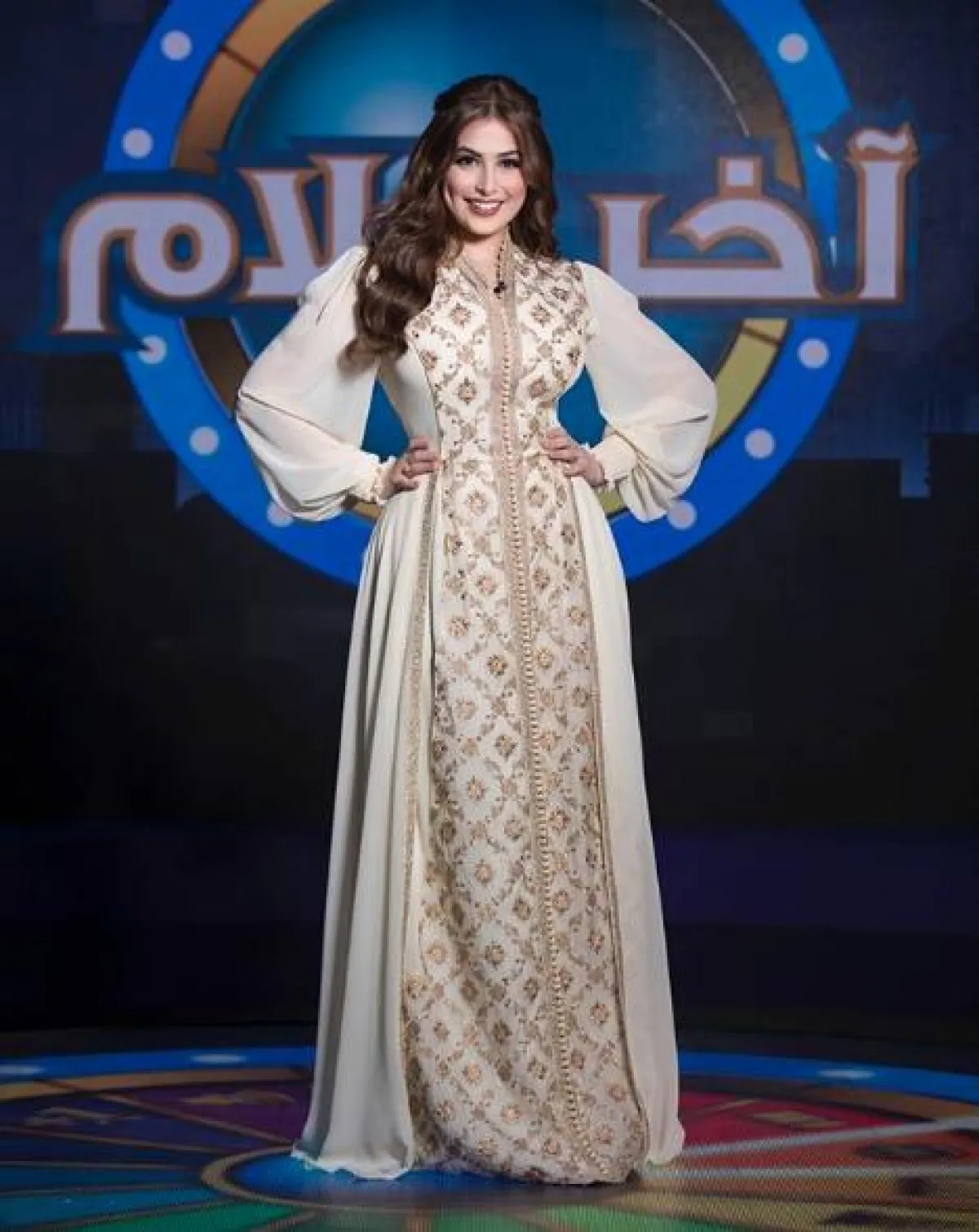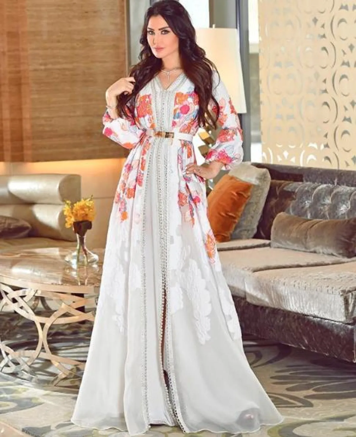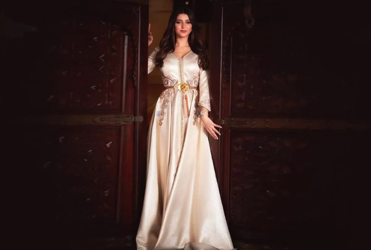 أمل العوضي في قفطان ناعم باللون الأبيض: