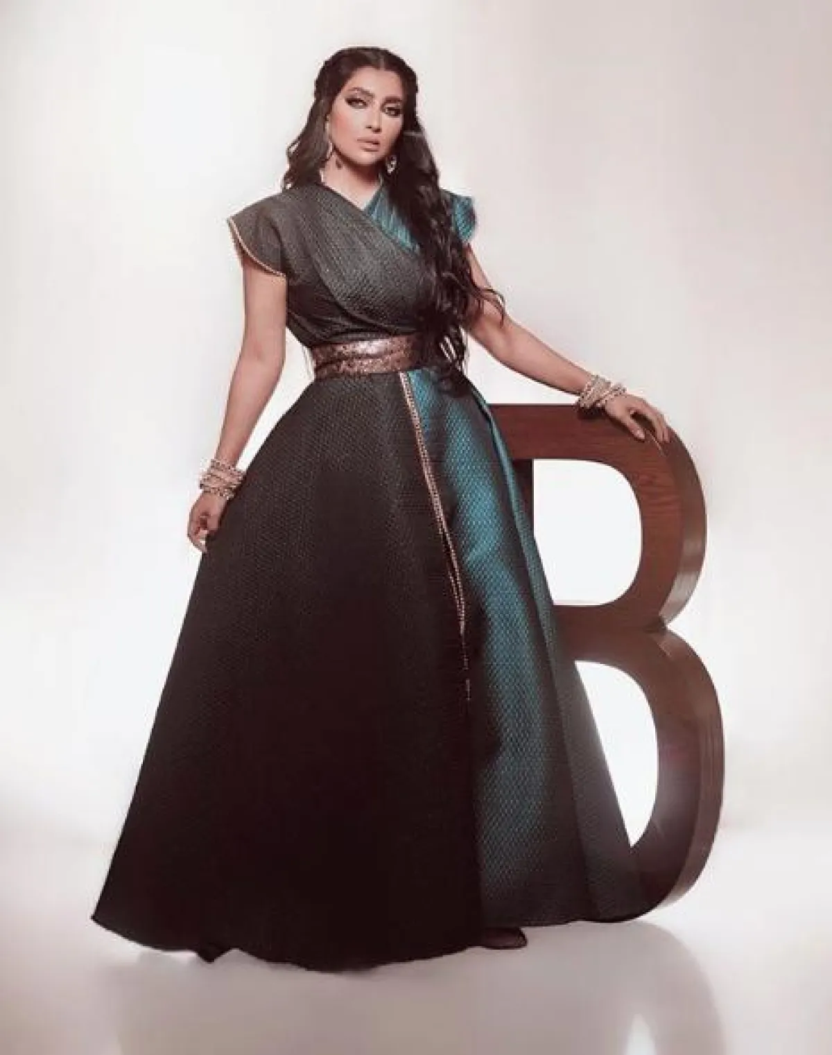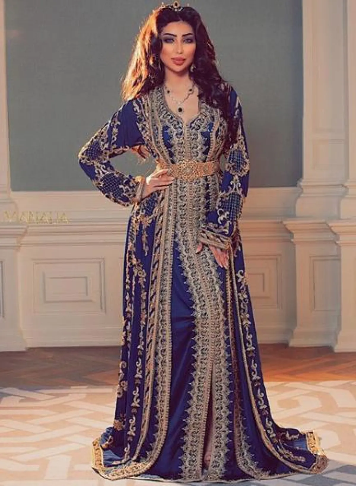 أما في حال رغبتِ باطلالة فاخرة للسهرات، فننصحكِ بأن تستوحي من اطلالة نسرين طافش، التي تألقت في قفطان بتصميم فاخر باللون الفضي الميتالك، قصته منسدلة، وقد زينت الخصر بحزام ذهبي على شكل ورود، وأكملت الاطلالة بأقراط كبيرة مزينة بالشراريب.