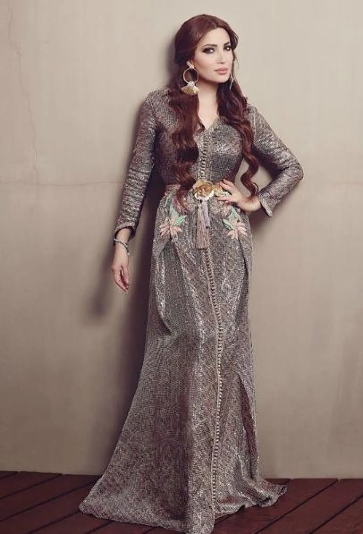 نسرين طافش في قفطان باللون الفضي: