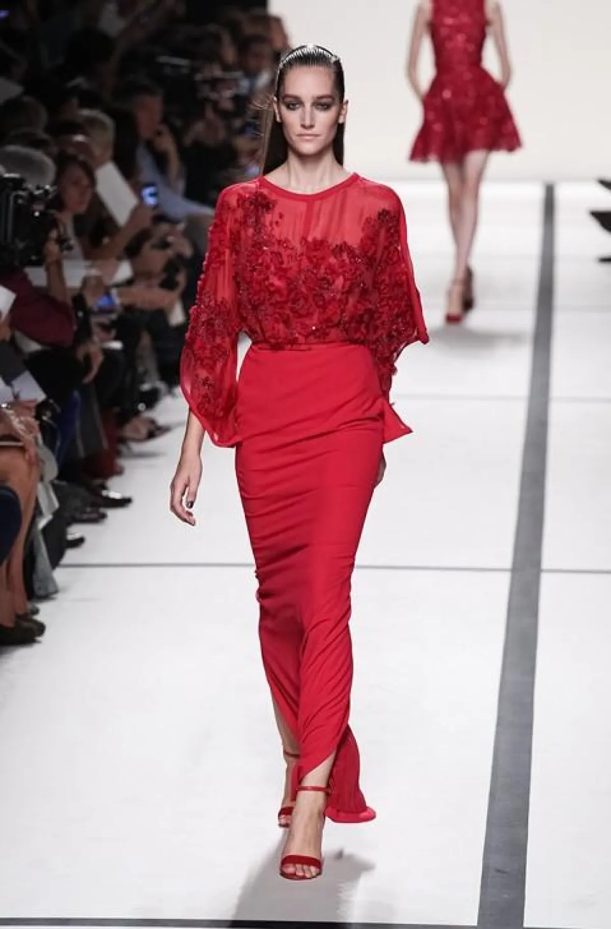 من موسم إلى آخر، ما يزال إيلي صعب يجذب نفس التهافت ونفس الإعجاب، حيث عجّت صالة العرض بعدد كبير من الصحافيين والمصوّريين ومن عاشقي الموضة من سيّدات المجتمعين الفرنسيّ واللبنانيّ، ومن نجوم الفنّ، من بينهنّ المطربة إليسا الوفيّة دائماً لعروض إيلي صعب، والتي كانت تُتابع بإعجاب، وترقب كلّ طلة، فيما جلس بجوارها مصمّم المجوهرات اللبناني الأصل فواز غريوزي.