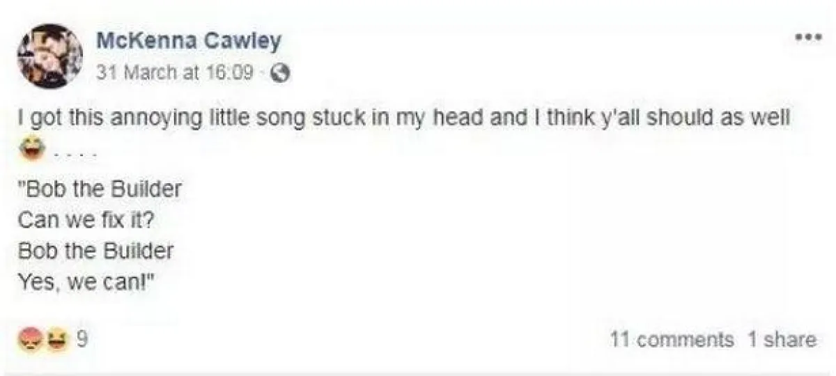 وقبل يومين من الحادث المروع ، نشرت الأم عبر صفحتها على “فيسبوك”، منشورًا عن كارتون “بوب ذا بيلدر” التي كانت الصغيرة تحب مشاهدته قائلة: “لقد علقت الأغنية المزعجة لكارتون بوب ذا بيلدر في رأسي، فهي تقول: "بوب ذا بيلدر هل يمكننا إصلاحه نعم يمكننا".