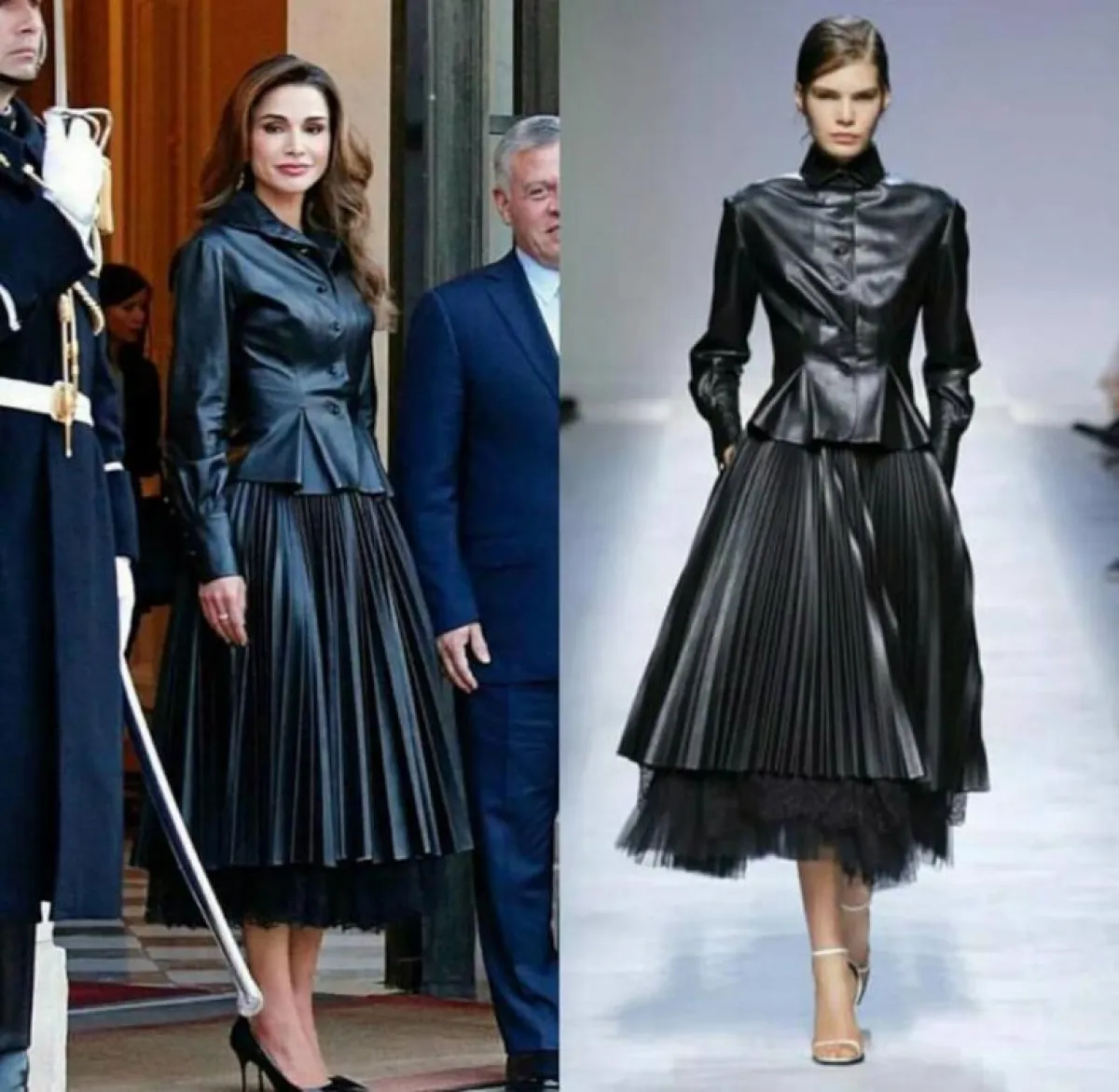 رغم عصرية اختيار الجلد من الرأس إلى القدم، لكنّ التصميم الذي اعتمدته الملكة رانيا، حافظ على أسلوبها في الأزياء، والذي يميل إلى الكلاسيكية ليتناسب مع مكانتها وزيارتها الرسمية كزوجة رئيس دولة عربية كبرى.