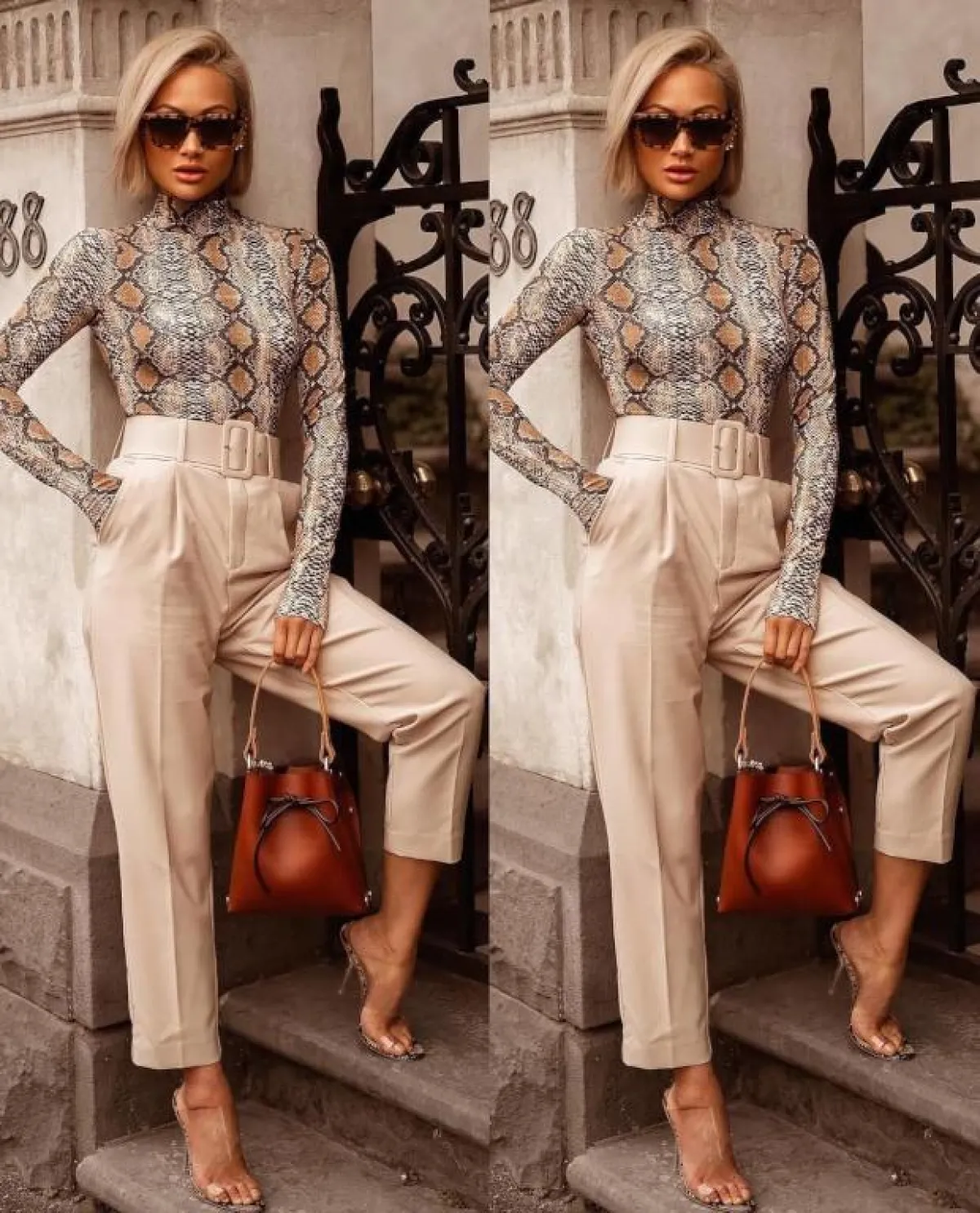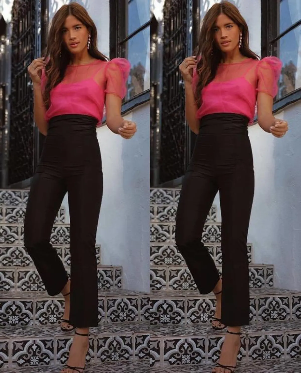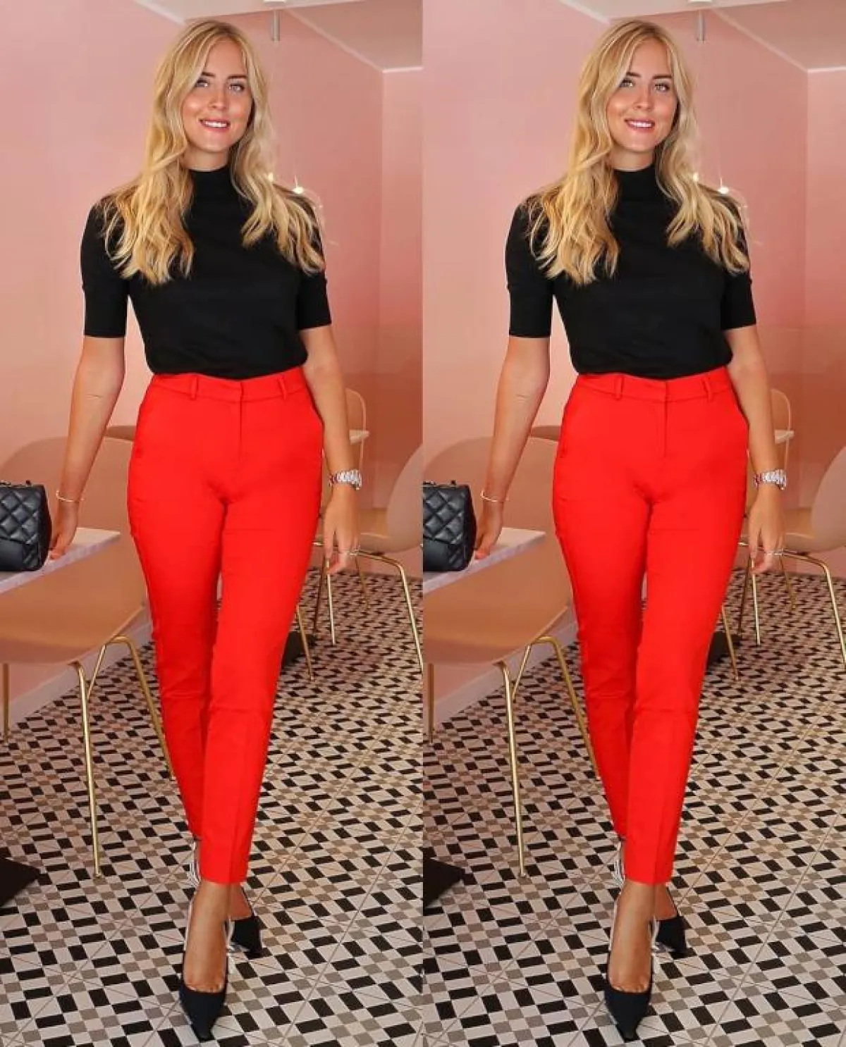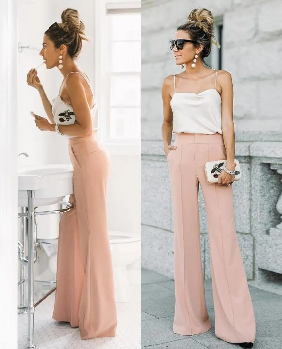 الاطلالتان السابقتان تعدّان اختيارًا موفقًا للعمل، كما أنّ هذه التفاصيل تناسب كل أشكال القوام النسائي تقريبًا، بخاصة وأنّ القصة الفضفاضة للبنطلون تخفي عيوب القوام، ومع اختيار خصر مرتفع، تختفي أيّ دهون في منطقة البطن.