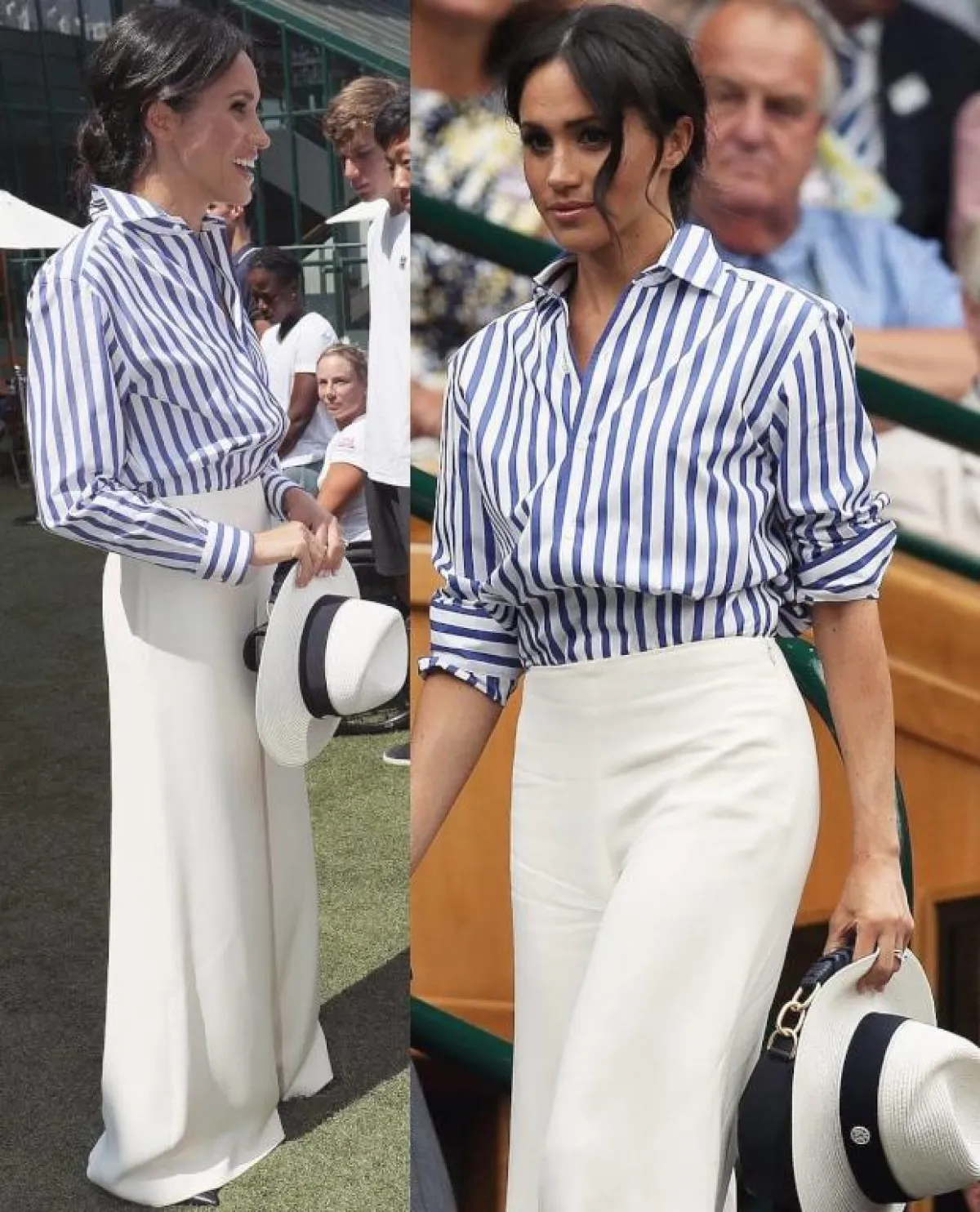 نسقي البنطلون الفضفاض على طريقة ميغان ميركل رغم كونها دوقة، إلا أنّ ميغان ميركل كثيرًا ما تفاجئنا بـ اطلالات عصرية بعيدة عن قواعد الأزياء الملكية، منها كانت اطلالتها ببنطلون فضفاض باللون الأبيض، والذي نسقته مع قميص نسائي مزين بخطوط طولية، مزجت بين الأبيض والأزرق المتوسط. اختارت ميغان تصميمًا بأرجل فضفاضة من أعلى الساق حتى نهايته، كما أنه زُيّن بتصميم الخصر العالي، الذي جعلها تبدو بقامة طويلة وممشوقة.