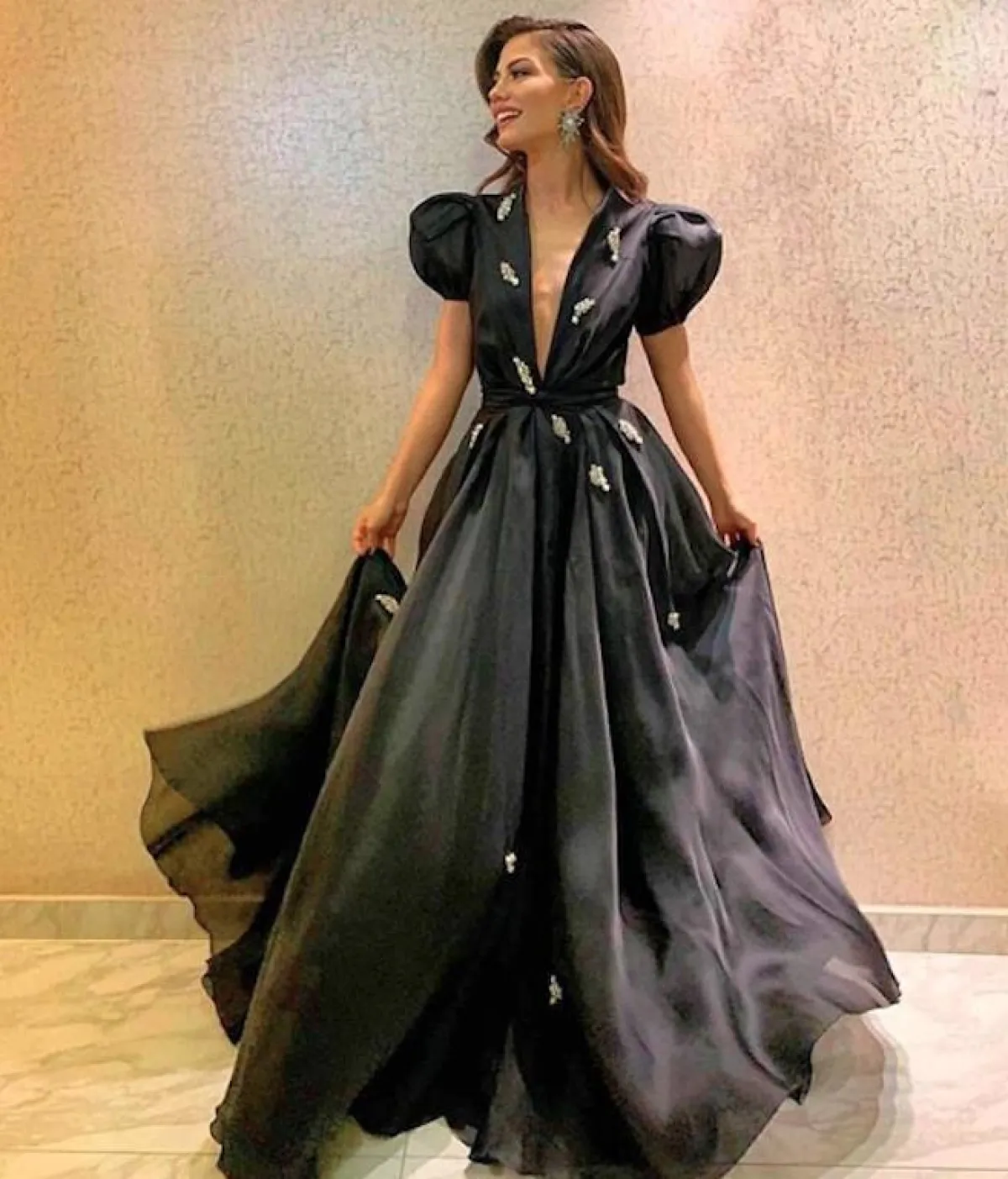 مما لاشك فيه أن اطلالة النجمة التركية ديميت اوزدمير كانت من الأجمل في حفل الموريسك دور أمس في الفستان الأسود ذو التصميم المميز الذي جمع بين الأناقة والعصرية، واختيارها للأقراط كان موفق وتسريحة الشهر الريترو والماكياج الناعم زاداها أناقة.
