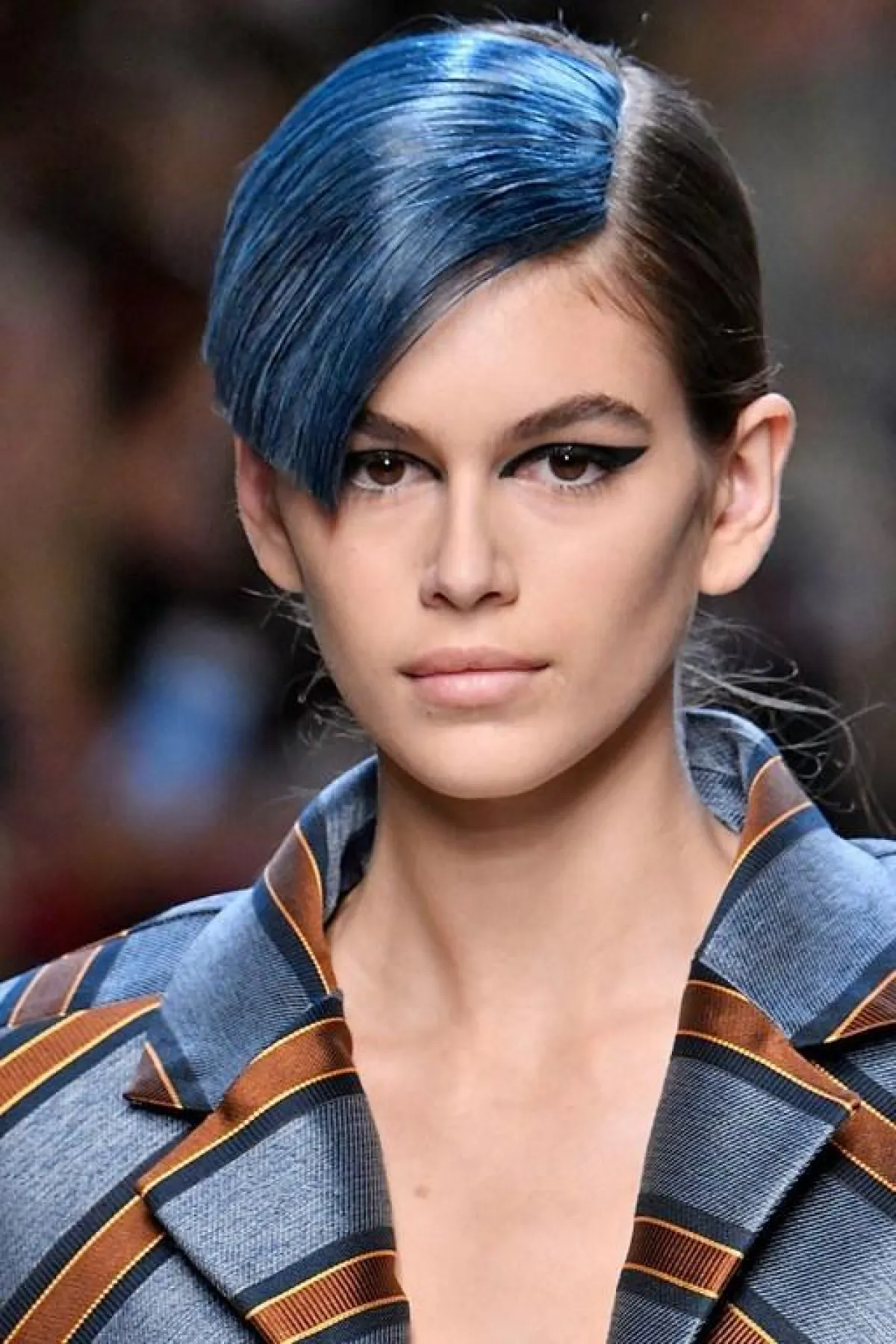 وفي عرض فندي للأزياء الجاهزة لربيع وصيف 2018 ظهرت كايا بإطلالة جريئة حيث تلوّنت غرّتها بدرجة اللون الأزرق القويّة وبدت ملامح وجهها خالية من المكياج باستثناء خط الأيلاينر العريض والمجنّح الذي لفت الانتباه إلى عينيها.