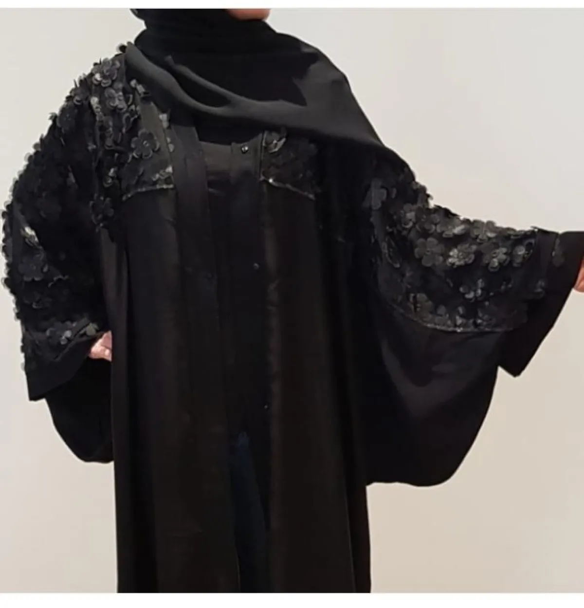 والأكمام الواسعة في تصميمات العبايات، من الصيحات التي لاحظنا اعتماد الكثير من ماركات العبايات عليها بشكل كبير، سواء مع التطريزات عليها، أو الاكتفاء باعتماد خامات مختلفة عن العباية ككل، كالأكمام الواسعة من الدانتيل أو الساتان.