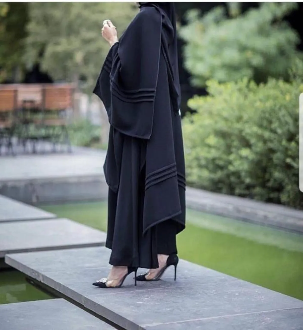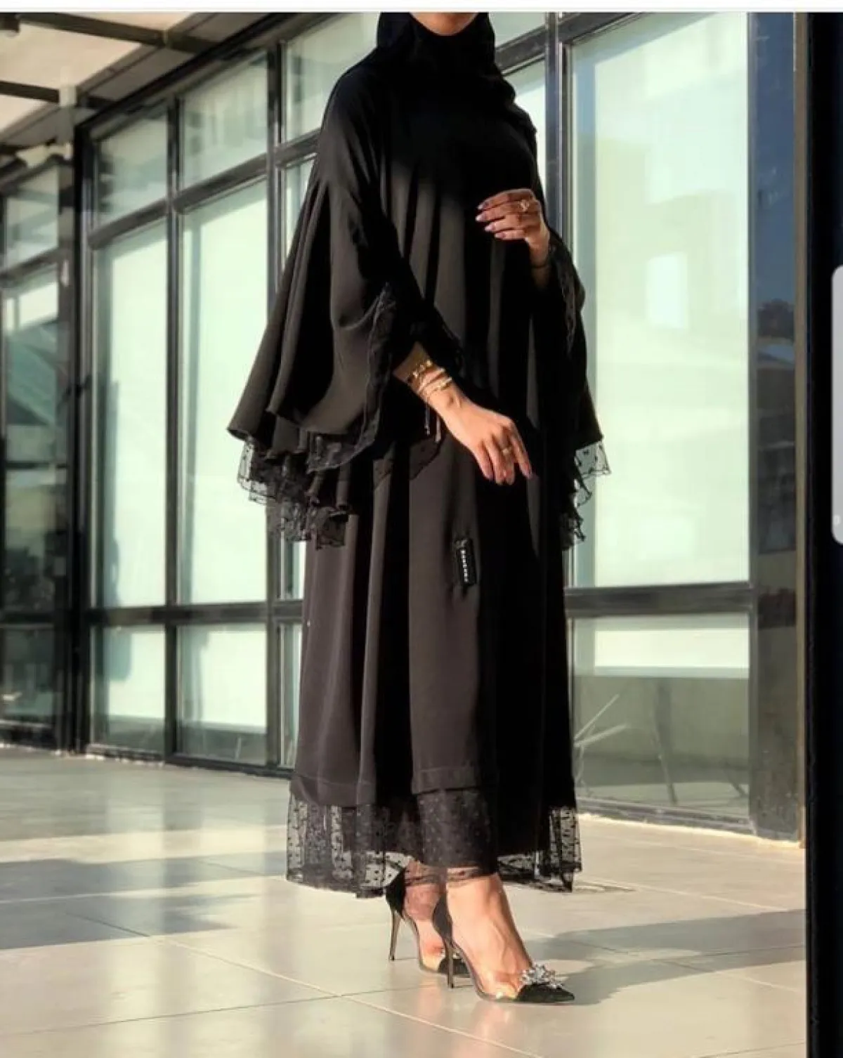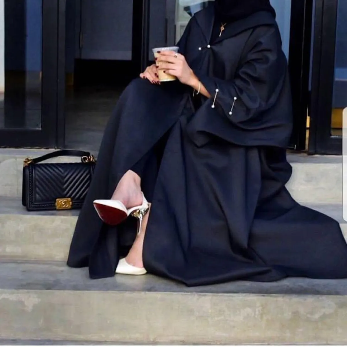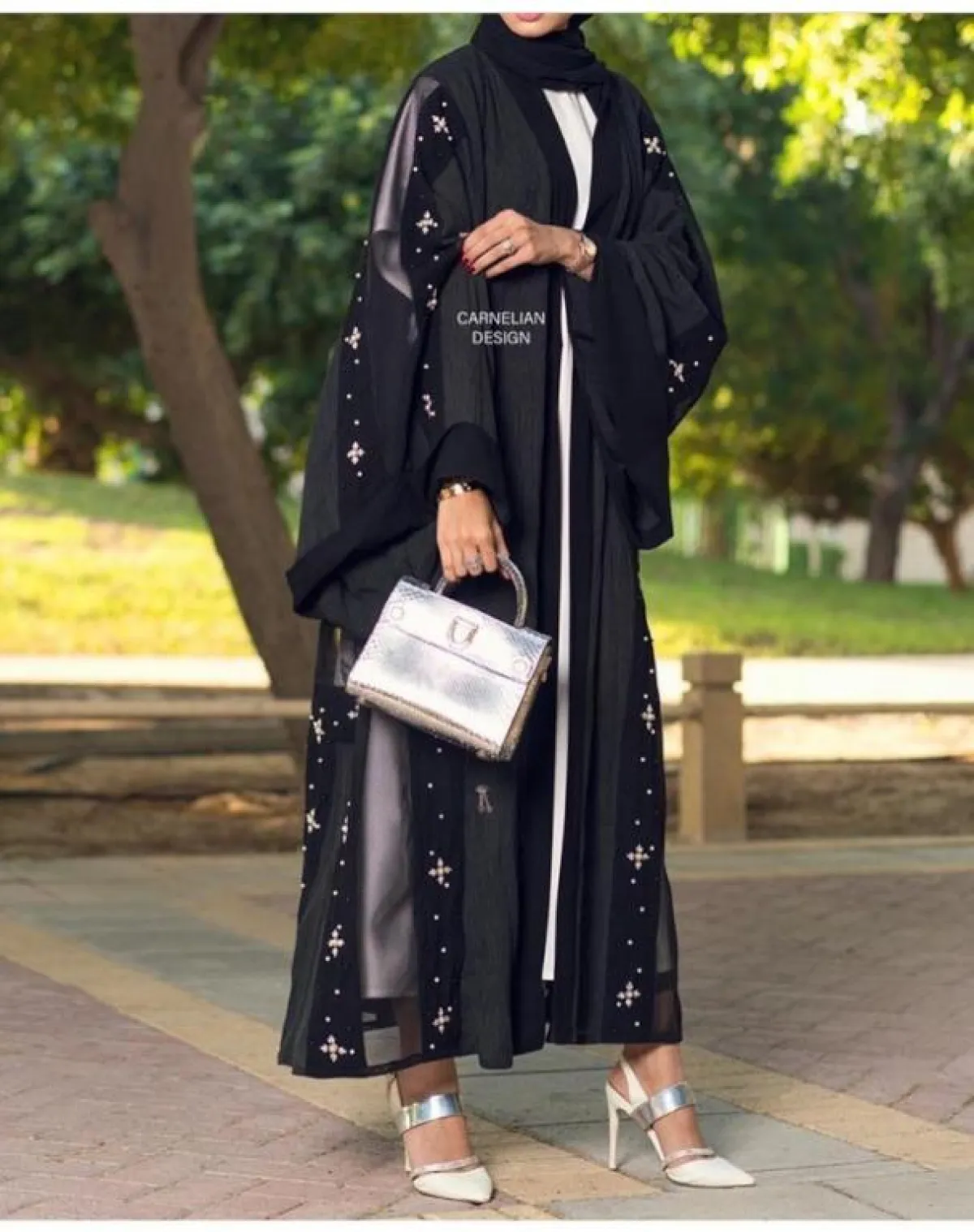 بلمسة بسيطة وراقية، اعتمدي هذه العباية الكلاسيكية من Zara Abayaa زارا عبايه، مع الاكسسوار على الأكمام فقط، نسقي معها حذاءً أبيض، وطرحة سوداء وشنطة ميني بيضاء.