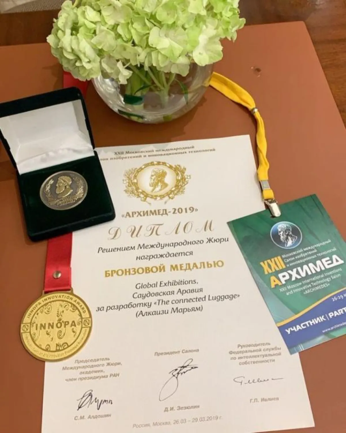 تجدر الإشارة إلى أنّ عددًا من المشاركين من المملكة كانوا قد حصلوا على عدد من الجوائز التي أعلنتها لجان التحكيم في المعرض الدولي ألـ 22 للاختراعات والتقنيات الحديثة "أرخميدس 2019" حيث حصل على الميداليات الذهبية كل من: حمد اليامي من معرض "أرخميدس موسكوط، وجائزة خاصة من اتحاد المخترعين الألماني ومن اتحاد المخترعين العراقي عن اختراعه إحرام إيلياء بتقنية النانو، والدكتورة هند عبد الغفار من معرض "أرخميدس موسكو" وجائزة خاصة من اتحاد المخترعين الروماني عن اختراعها درعًا واقيًا من الرصاص، وعائض السبيعي من معرض "أرخميدس موسكو" جائزة خاصة من اتحاد المخترعين المغربي وميدالية فضية من اتحاد المخترعين العراقي عن اختراعه تطبيق الحروف الأبجدية لتعليم لغة الإشارة بلغات عالمية.