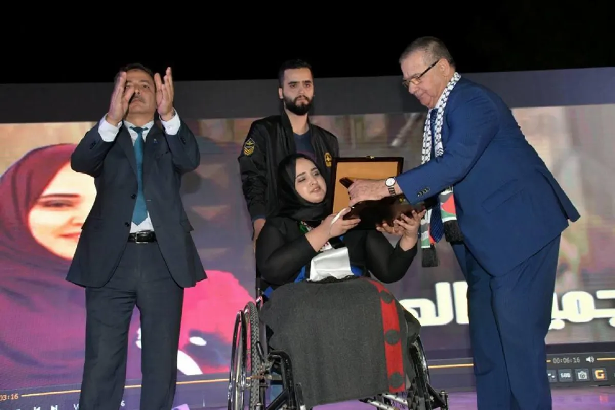 خطفت الجريحة الفلسطينية جميلة الهباش، القادمة من غزة لاستكمال علاجها في السعودية، الأنظارَ خلال حفل سفارة دولة فلسطين بالرياض، في "يوم الأرض"، إذ كرَّمها سفير دولة فلسطين باسم الآغا، خلال المهرجان.