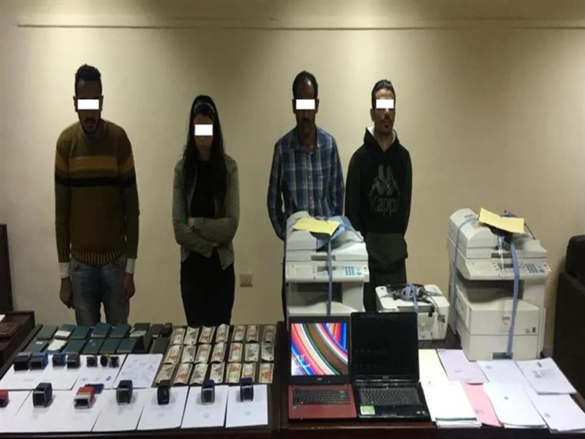 وعقب تقنين الإجراءات بالتنسيق مع قطاعي الأمن الوطني والأمن العام ومديرية أمن الجيزة، تم استهداف المتهمين، وبتفتيش الشقة محل التحريات تم ضبط أكلاشيه لخاتم شعار الجمهورية مقلد منسوب صدوره لإحدى الجهات الحكومية، 13 أكلاشيهاً لأختام مقلدة منسوب صدورها لعدة بنوك، وبعض الشركات السياحية ومكاتب الترجمة، 12 جواز سفر.