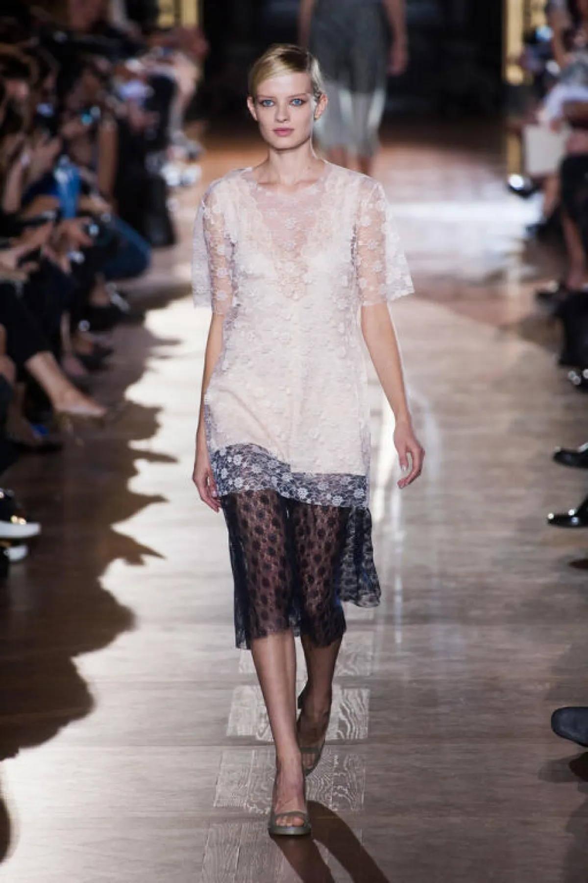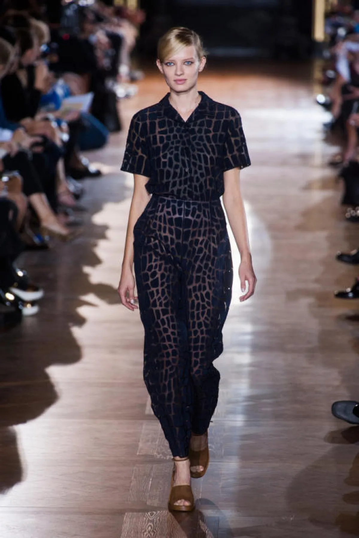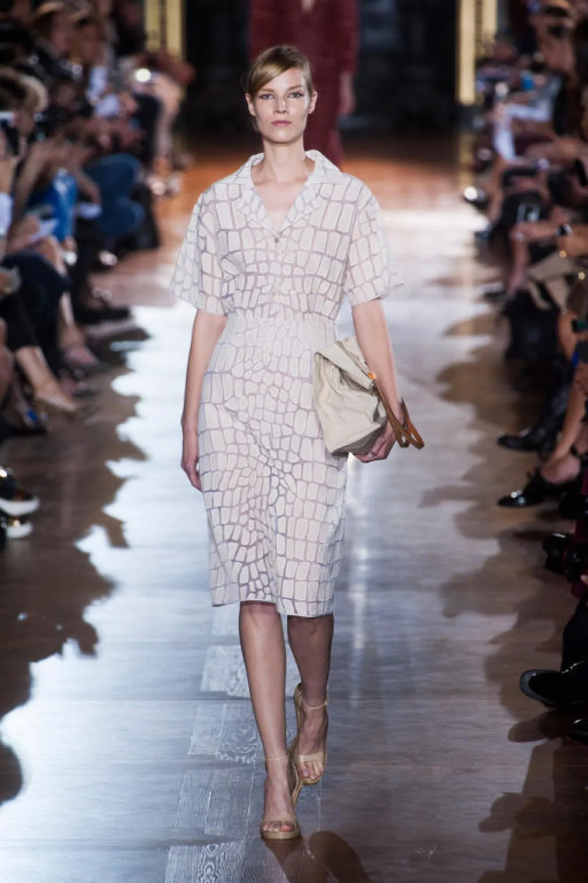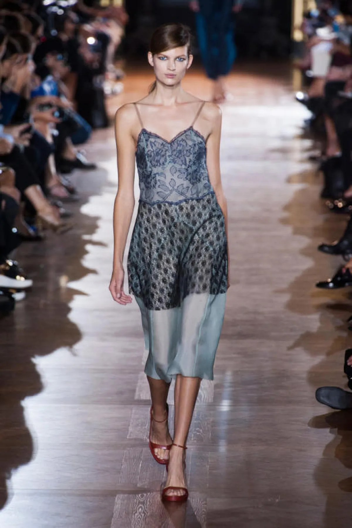 تميّزت مجموعة Stella McCartney لربيع وصيف 2014، في أسبوع الموضة في باريس، بتصاميم عصريّة جريئة، تجمع بين الفساتين الجريئة المتميّزة بالدانتيل والبدلات العصرية الراقية في ألوان محايدة، تتنوّع ما بين الأبيض والأسود والأزرق والأحمر، مع حضور خجول للأقمشة المطبّعة.