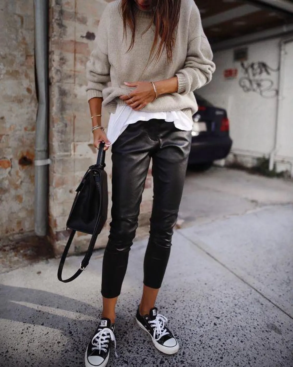 أفكار لتنسيق البنطلون الجلد في الربيع