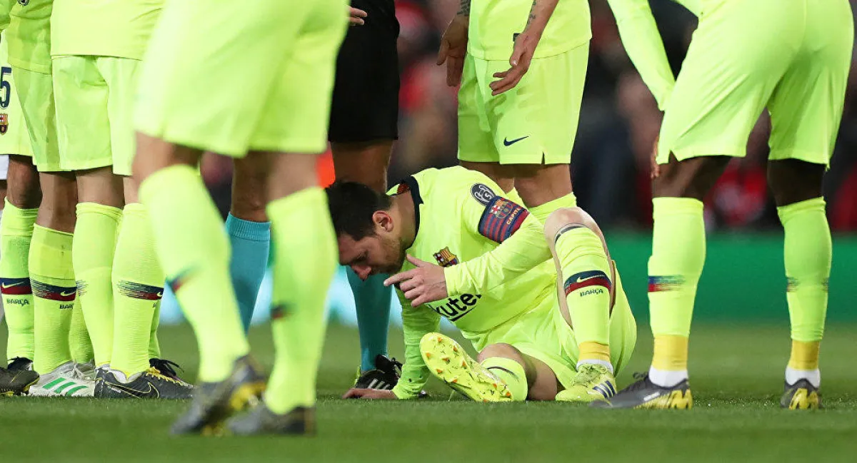 وتعرض ميسي للضربة القوية من تدخل من كريس سمولينغ مدافع يونايتد الإنكليزي، حيث أصاب وجهه بساعده خلال تدخله السريع، واضطرته إصابته إلى الخروج بعد الشوط الأول من المباراة. وصرح لويس سواريز، مدرب برشلونة بعد المباراة، قائلاً: «ميسي لم يشعر براحة بعد إصابته في الوجه، سيخضع للكشف لنرى مدى الإصابة فقد كانت قوية وتركت كدمة كبيرة».