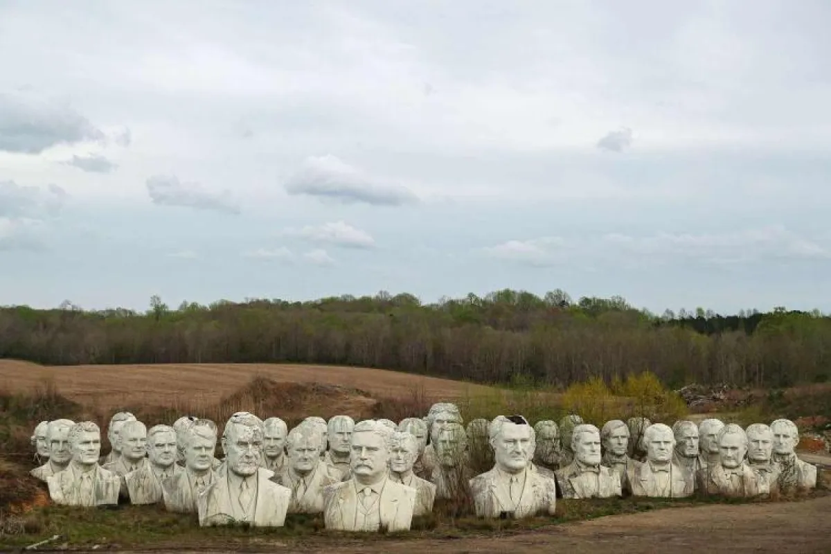 يصطف 43 تمثالاً ضخمًا لرؤساء الولايات المتحدة في حقل المزارع الأميركي هوارد هانكينس، في ولاية فيرجينيا، وكأنه متحف بدائي مفتوح في الهواء الطلق لتماثيل الرؤساء السابقين من المتوفين والأحياء. ويجد الزائر لدى التجول في المزرعة، تمثال أول رئيس للولايات المتحدة جورج واشنطن، حيث يعاند الزمن للبقاء ثابتاً في مكانه، وفقًا لصحيفة «العرب».