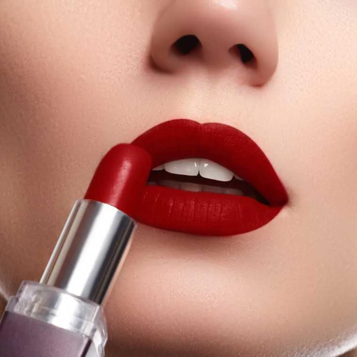على الرغم من أنكِ قد ترغبين في ارتداء أحمر الشفاه اللامع في يوم زفافِك، عندما يتعلق الأمر باللون الأحمر ، فإنّ الدرجات غير اللامعة هي دائمًا الخيار الأفضل في يوم تحتاج فيه إلى بقاء أحمر شفاهِك.