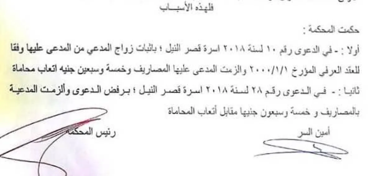 أضاف: واتعصبت وقالت انك لازم تعرف أني حاقول من دلوقتي أنك مدير أعمالي وعمرك ماكنت جوزي وخد هدومك ومع السلامه .. وفعلآ عدت الي منزلي الأصلي ،، وأقمت دعوه أمام محكمة الأسره لأثبات الزواج، وبدأت حمله غير شريفه منها ضدي بان وجودي معها كان لإدارة أعمالها مع أندهاش الجميع حولنا ومع دهشة كل الأصدقاء والمعارف رفعت دعوي أمام محكمة الأسره باثبات الزواج مقدمآ العقد التي تدعي أنه غير موجود أصلآ مع حوافظ مستندات من الصور والمستندات الحقيقيه لحياه امتدت ل ١٨ سنه ما بين شقق الأسكندريه والغردقه ورأس سدر وشقة الزوجيه في الزمالك وكذلك شقة الهرم وهي تقيم فيه مع مدير أعمالها ( أقصد زوجها ) في سرير واحد وحياه كامله عاصرها الجميع، وأبلغتها إدارة المعاشات بثبوت الزواج وتم قطع معاش سعد وهبه عنها وأبلغها وكيل نيابة قصر النيل بمهله وإلا سيقوم بأحالتها الي جنحه بتهمة الأستيلاء علي أموال الدوله وأخفاء معلومات الزواج والتزوير في البطاقة وكانت المهله لرد المبلغ المسروق وقدره ٥١٧ ألف جنيه، وفعلآ تم رد المبلغ من أول جلسه، وكان لابد من أن تقوم بالأنتفام لقيامي بمساعدة بنات سعد، فقامت بأبلاغ مباحث الأموال العامه بأنني سرقت دفتر شيكاتها وزورت توقيعها بالتواطئ مع بعض موظفي البنك، وذكرت في البلاغ المقدم بتاريخ 26 يناير 2018، أني سرقت هذه الشيكات مستغلا عملى مديرا لاعمالها، حيث أنني قمت بصرف 300 شيك لصالحها وبتوقيعها ولم تشتكي الا ب16 شيك فقط يعود تاريخهم الى العام 2016.