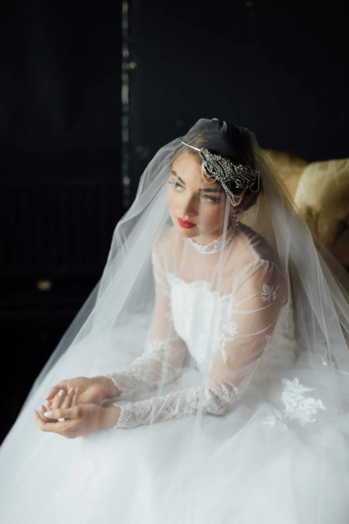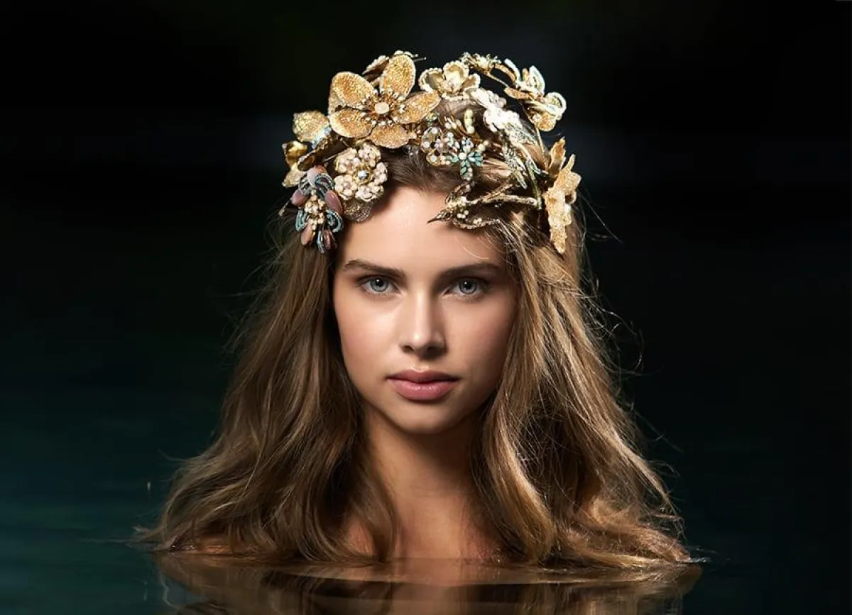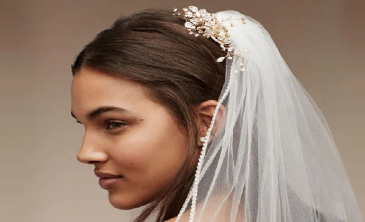 يمكنكِ اعتماد الهيد بيس للطرحة، بتصميم فروع الأشجار الذهبية، وتكون متفرعة بشكل ملكي حول شعرِك، وتكون الطرحة منسدلة من الخلف.