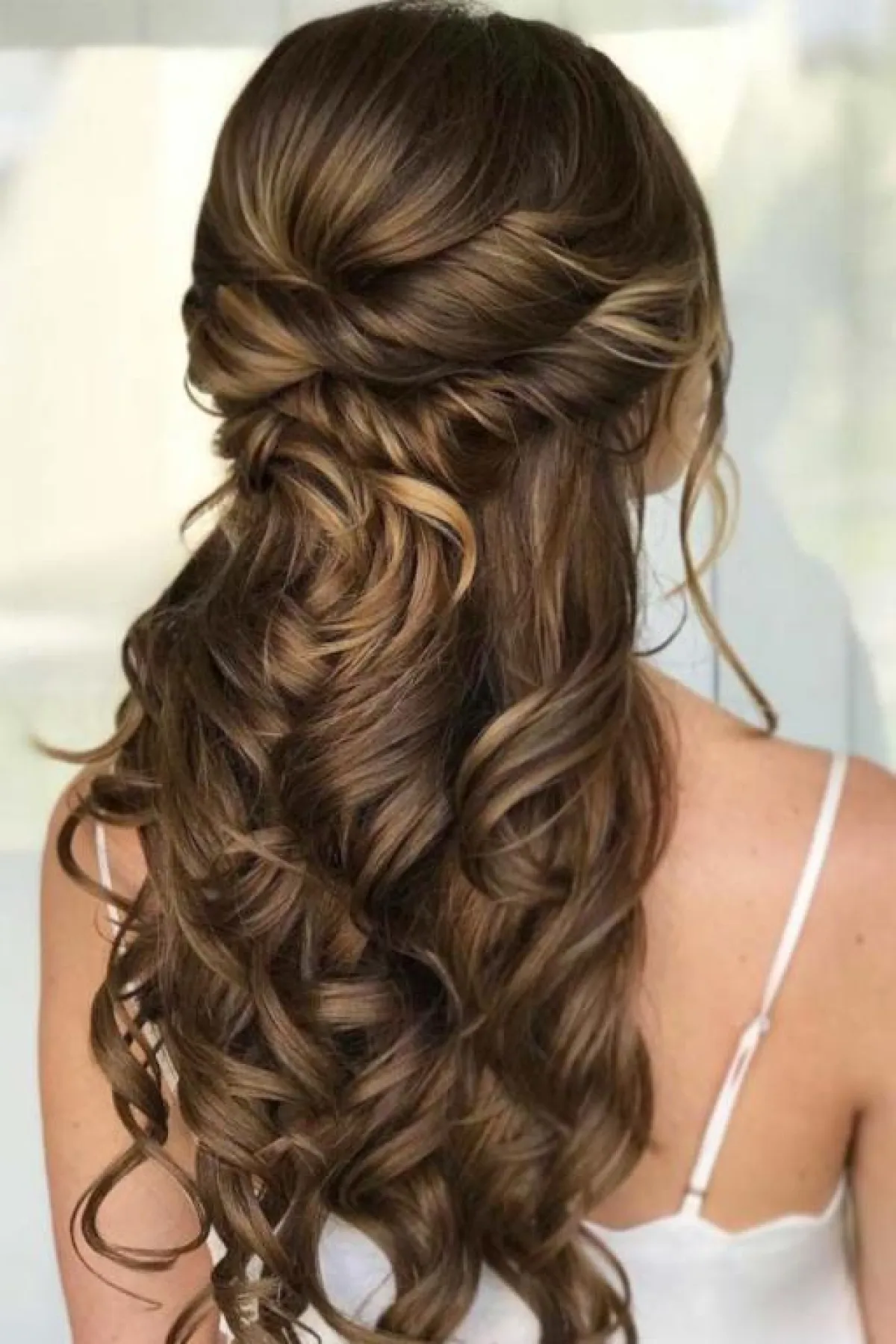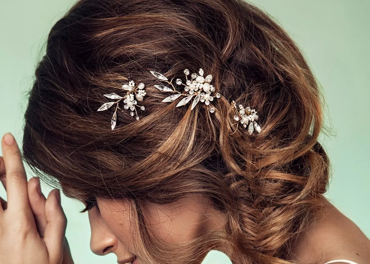 أما إن كنتِ تميلين لإبراز ظهر الفستان، فيمكنكِ اعتماد الشعر المتكسر، مع رفعه للأعلى، ولكن بطريقة غير محكمة، كتسريحة مستوحاة من الثمانينيات والتسعينيات، مع وضع مشابك الشعر الكريستالية.