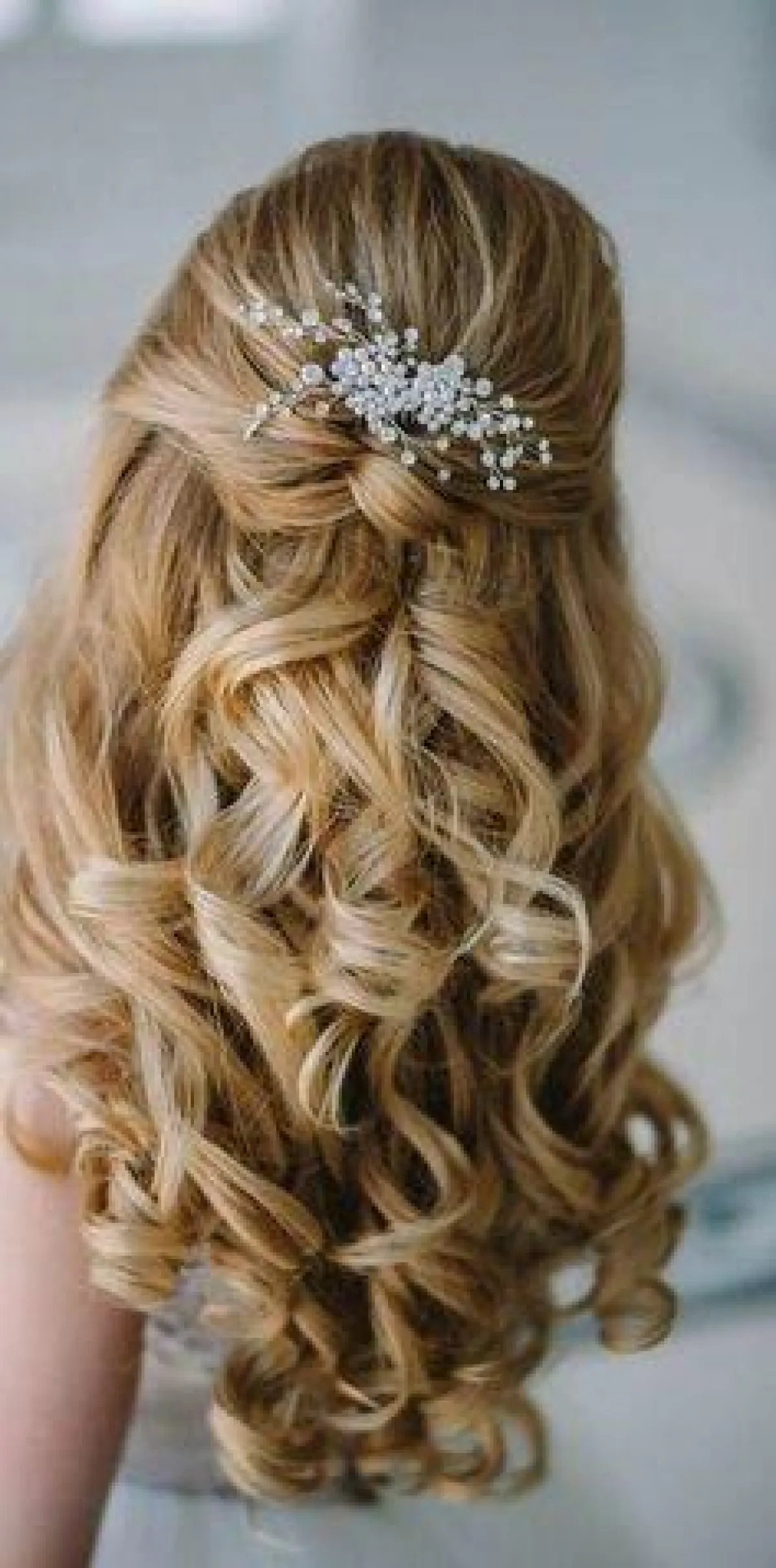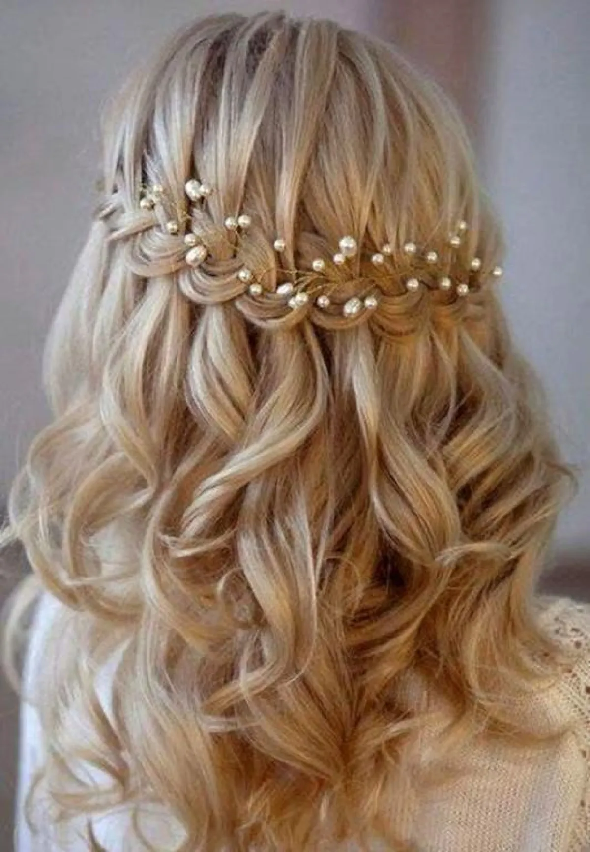 تسريحة ذيل الحصان مع رفع خصلات بسيطة من أحد الجانبين، وترك باقي الشعر منسدلًا، ووضع اكسسوار الشعر سوف تناسب فستانكِ البسيط والناعم، بخاصة وإن لم يكن به الكثير من التطريزات للظهر.