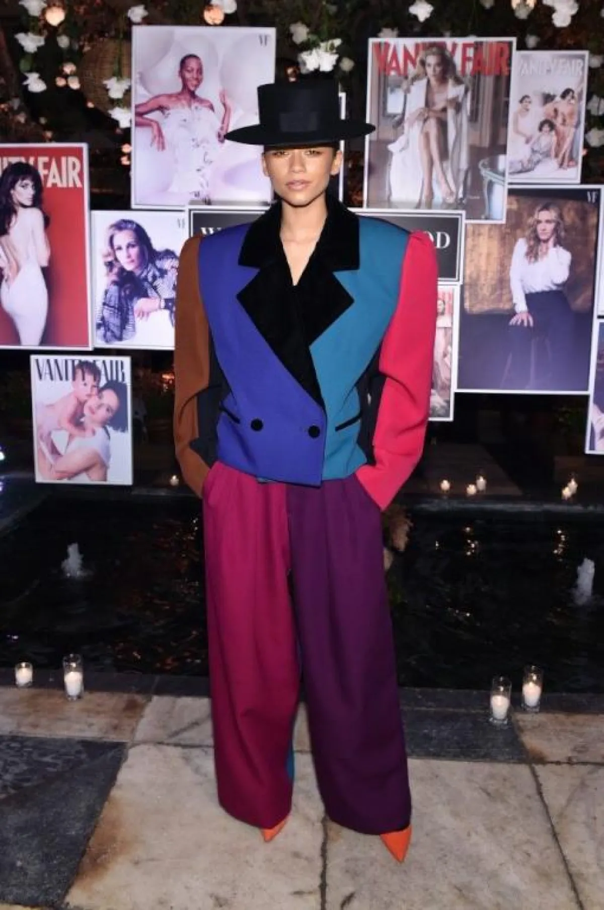 استوحت زيندايا في واحدة من اطلالتها الشهيرة، روح أزياء الثمانينيات، حيث اعتمدت بدلة مزينة بألوان بارزة مع تصميم يذكرنا بمغني البوب الشهير مايكل جاكسون، لا سيما وأنها اعتمدت قبعة سوداء عصرية.