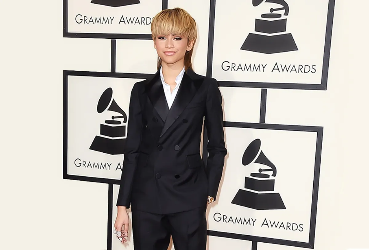 ظهرت زيندايا ببدلة رجالية بتصميم فضفاض، ونسقتها مع تي شيرت كاشف للخصر وحذاء رياضي، كما زينت جيب السترة بودرة حمراء.