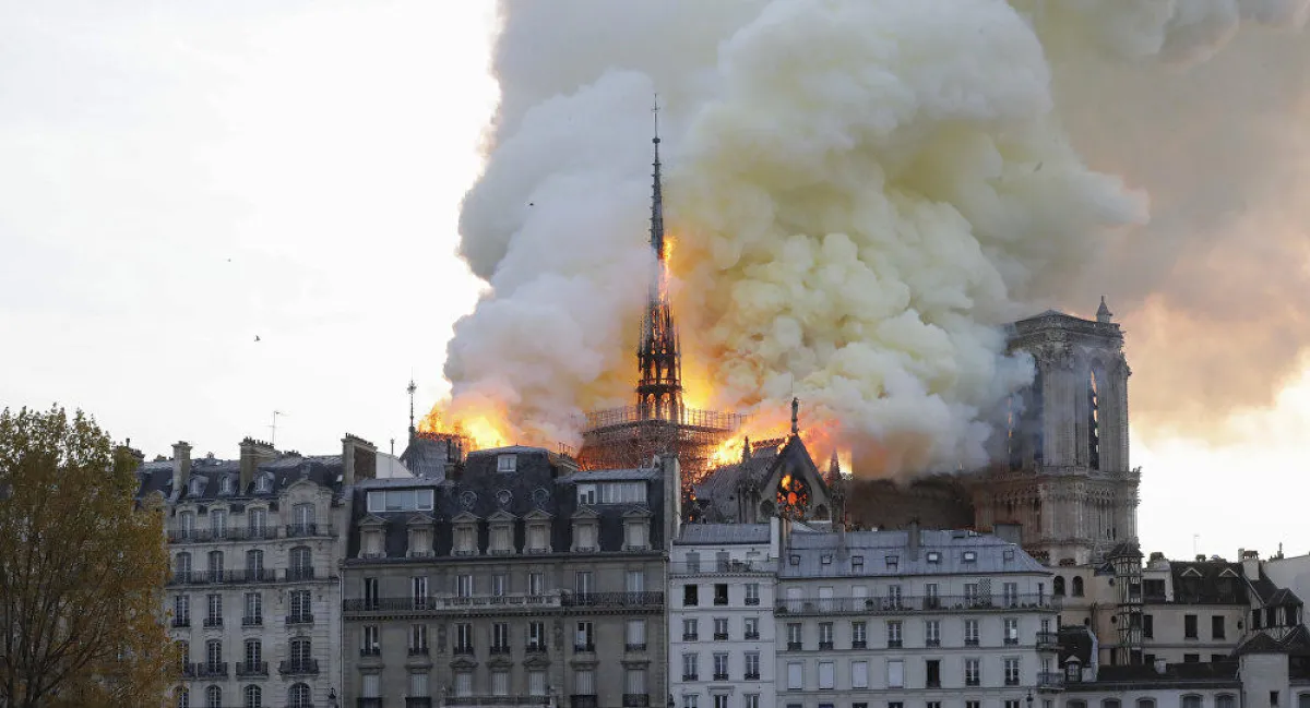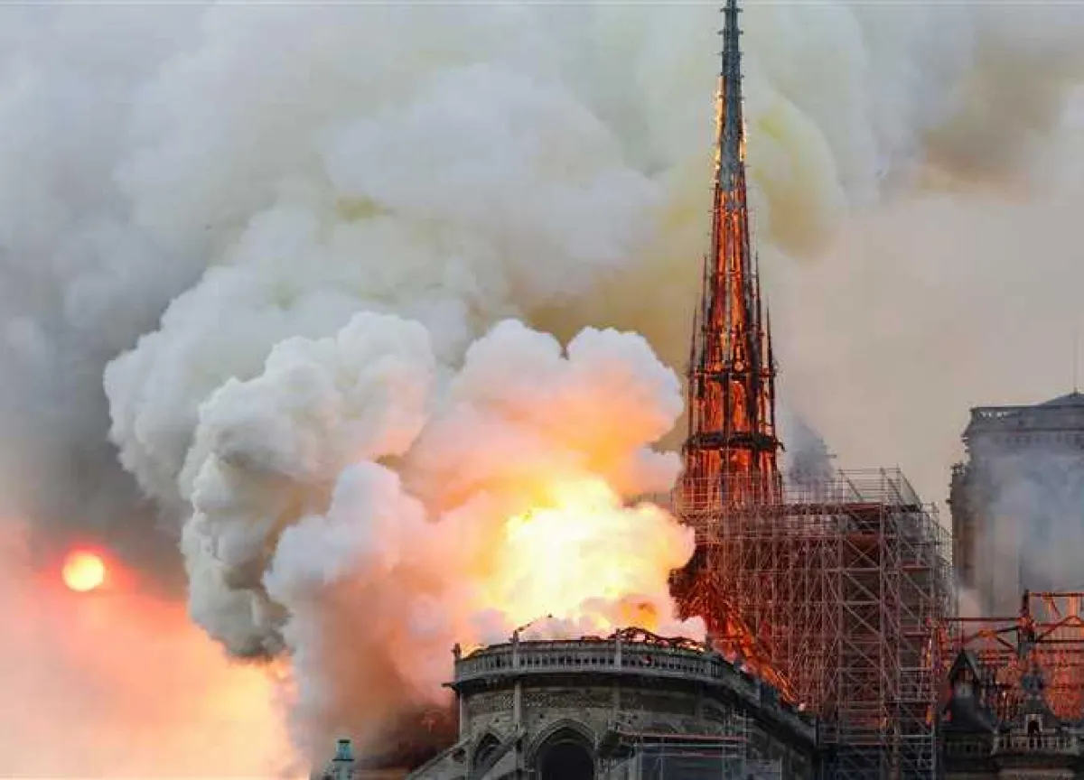 اندلع حريق في سقف كاتدرائية نوتردام، أحد أشهر الصروح الدينية والسياحية في العاصمة الفرنسية باريس، يوم أمس الاثنين، ما أدى إلى سقوط السقف بالكامل، بحسب «فرانس 24».