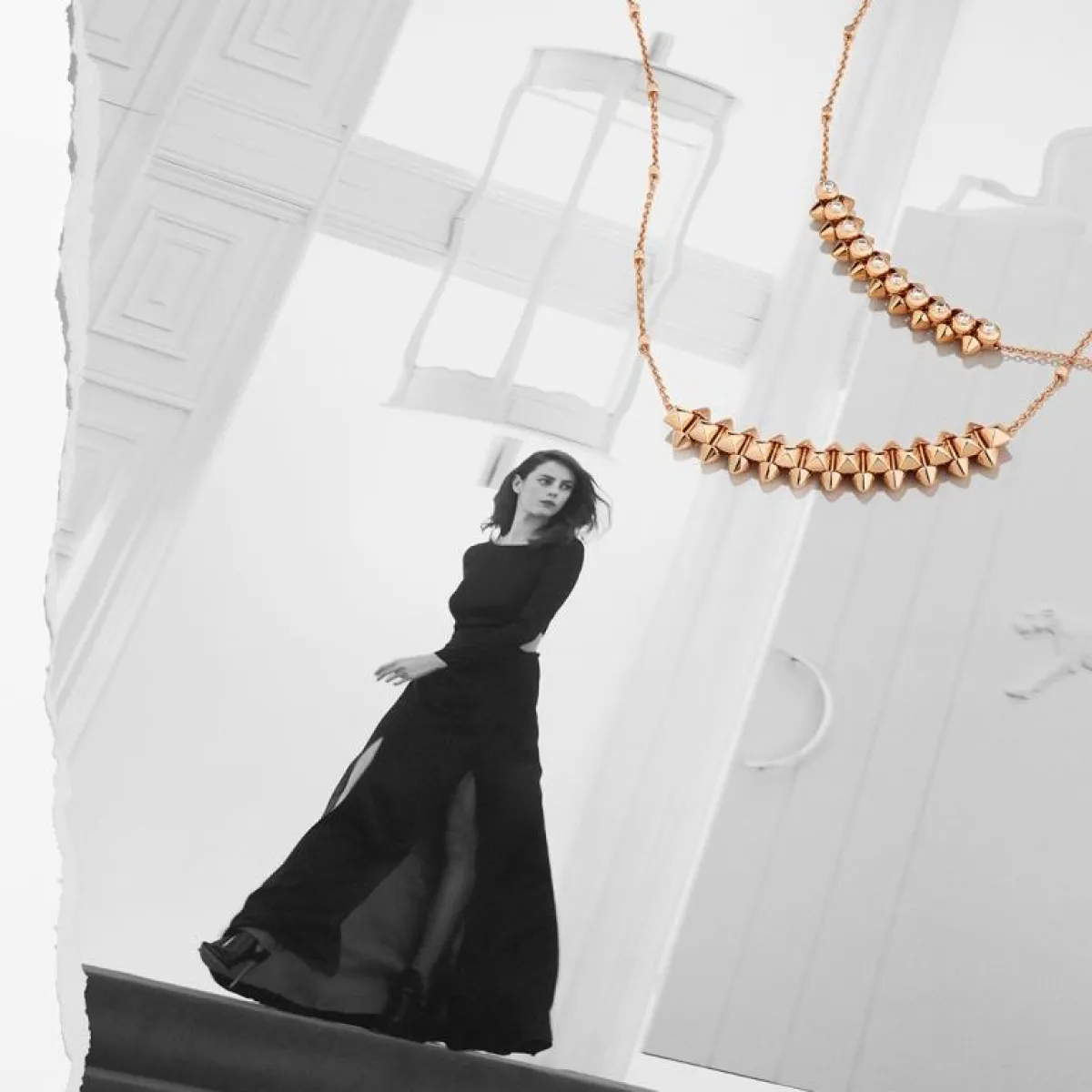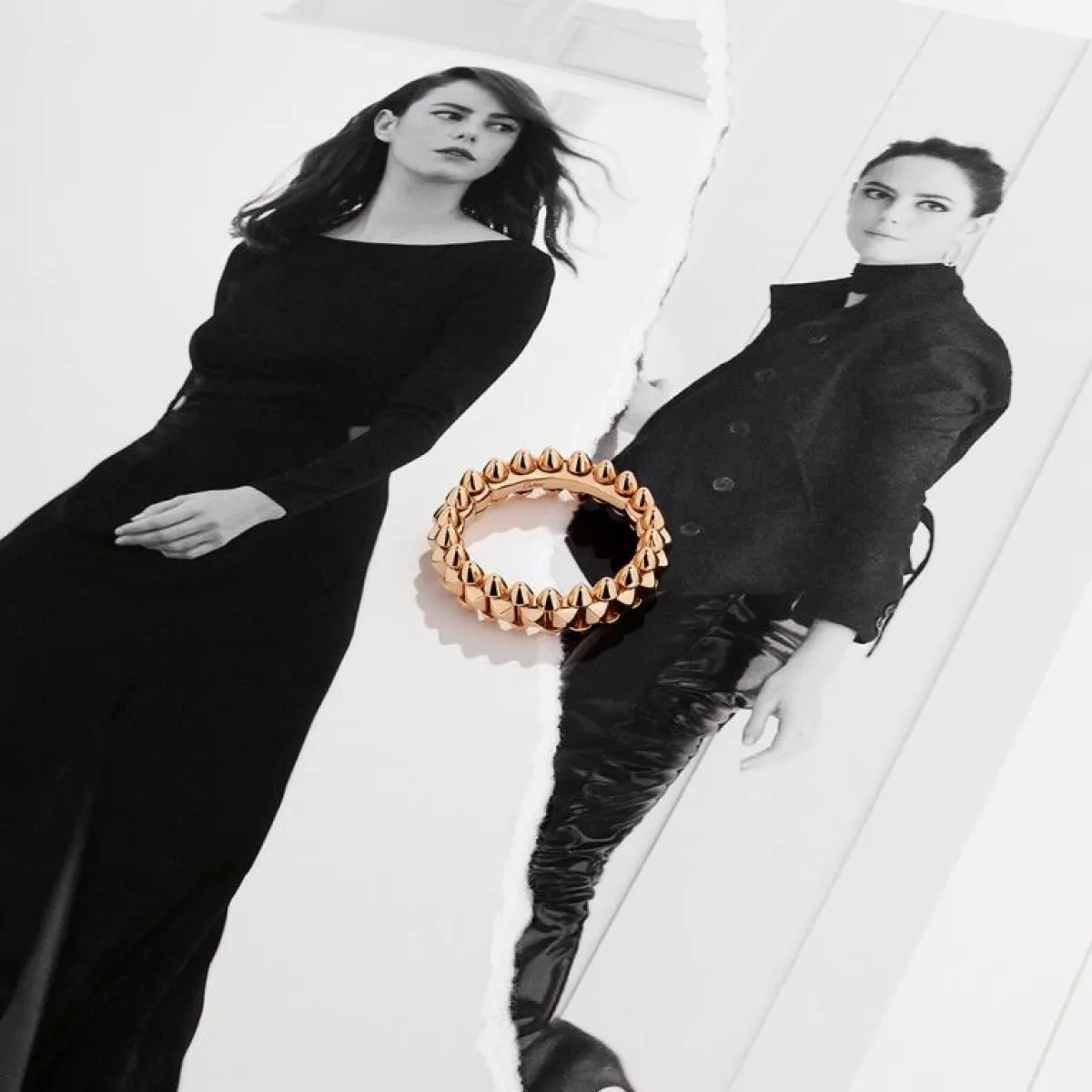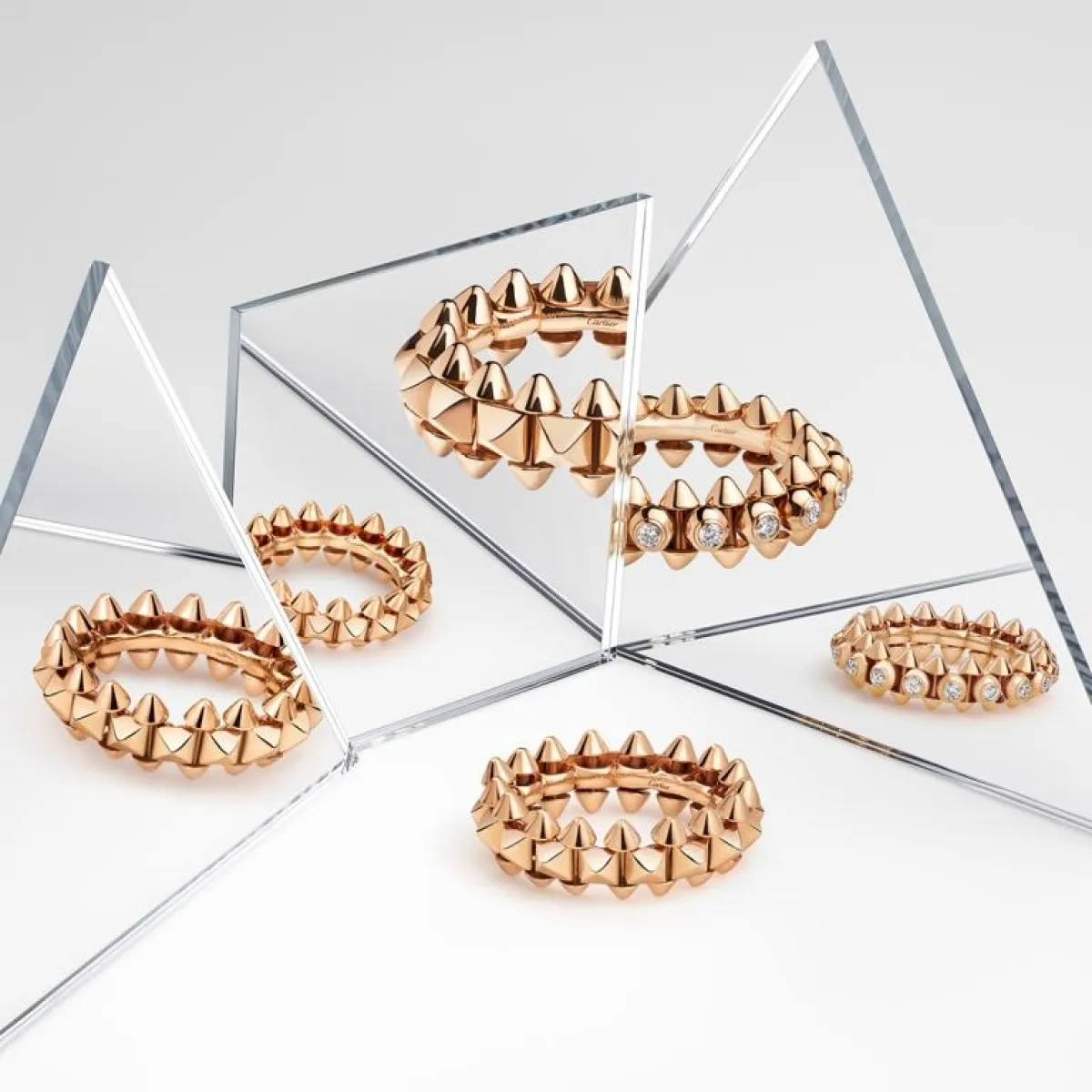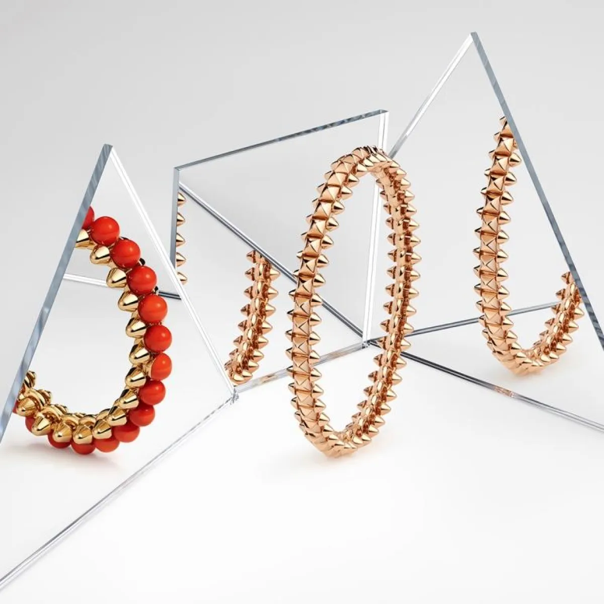 تحدث مجموعة كلاش دو كارتييه Clash de Cartier ثورة في المواصفات الجمالية التي تميزت بها الدار، من خلال الأزرار والخرز والمسامير المربعة.