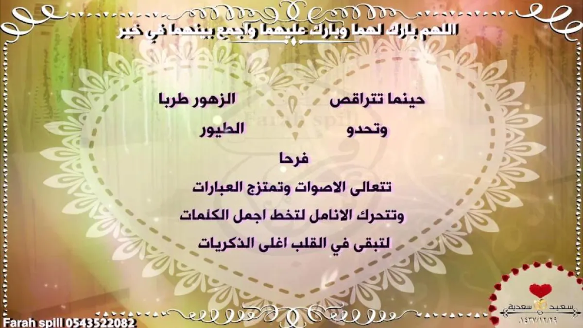 دعوة الزفاف من الترتيبات المهمة التي تحضّر لها العروس، فهي الرسالة السعيدة التي ترسلها للمدعوين، ليشاركوها فرحتها، والتي تُكتب بكل حب وفرح. وما أجمل أن تكون بطاقة زفافكِ مزينة بالأبيات الشعرية، والتي جمعناها لكِ لتختاريها على ذوقِك.