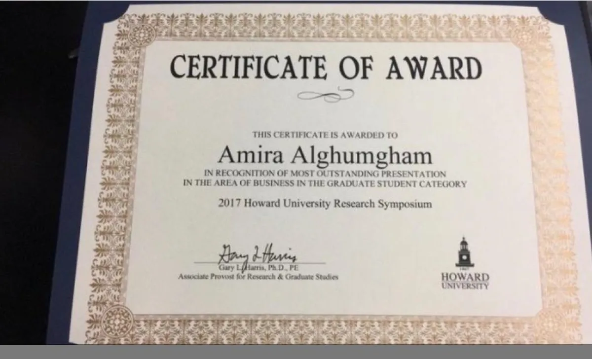 وأصبحت الطالبة السعودية أميرة الغمام هي الفائزة الأولى والوحيدة من جامعة هاورد وذلك منذ الإعلان عن الجائزة قبل 25 سنة.