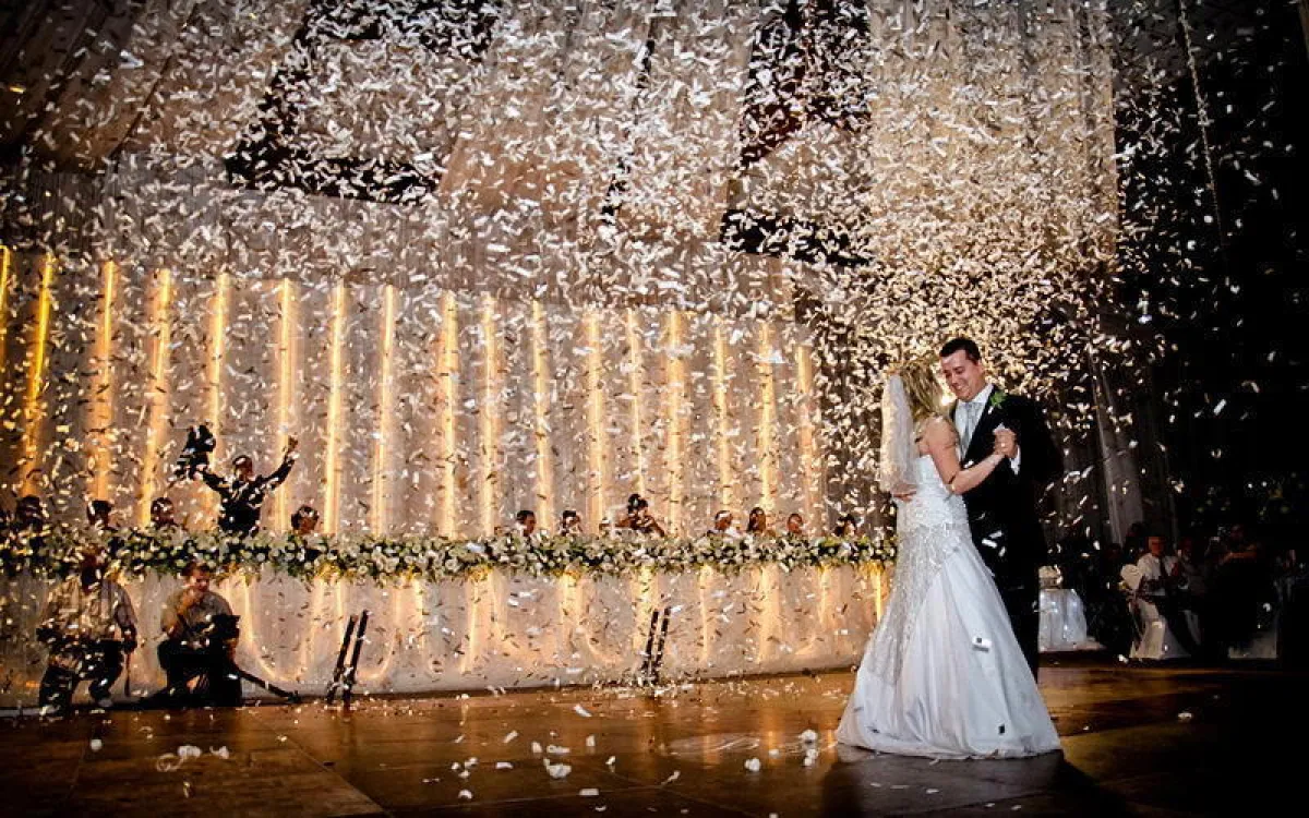 عليكِ الانتباه جيدًا عزيزتي إلى مدخل القاعة، فهو أول انطباع يأخذه المدعوون عن أجواء حفل زفافكِ، على سبيل المثال إن كان المدخل عبارة عن حديقة، فاستخدمي النباتات المعلقة لتزيين السقف، ووضع الأكواب الزجاجية الضخمة من الشموع، في كل مكان،