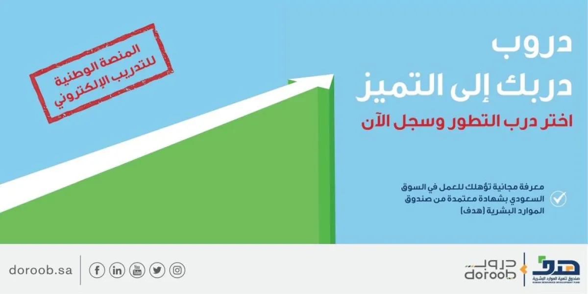 وأكد "هدف"، أنه بإمكان الراغبين التسجيل في الدورات التدريبية لـ "دروب"، عبر الرابط www.doroob.sa.