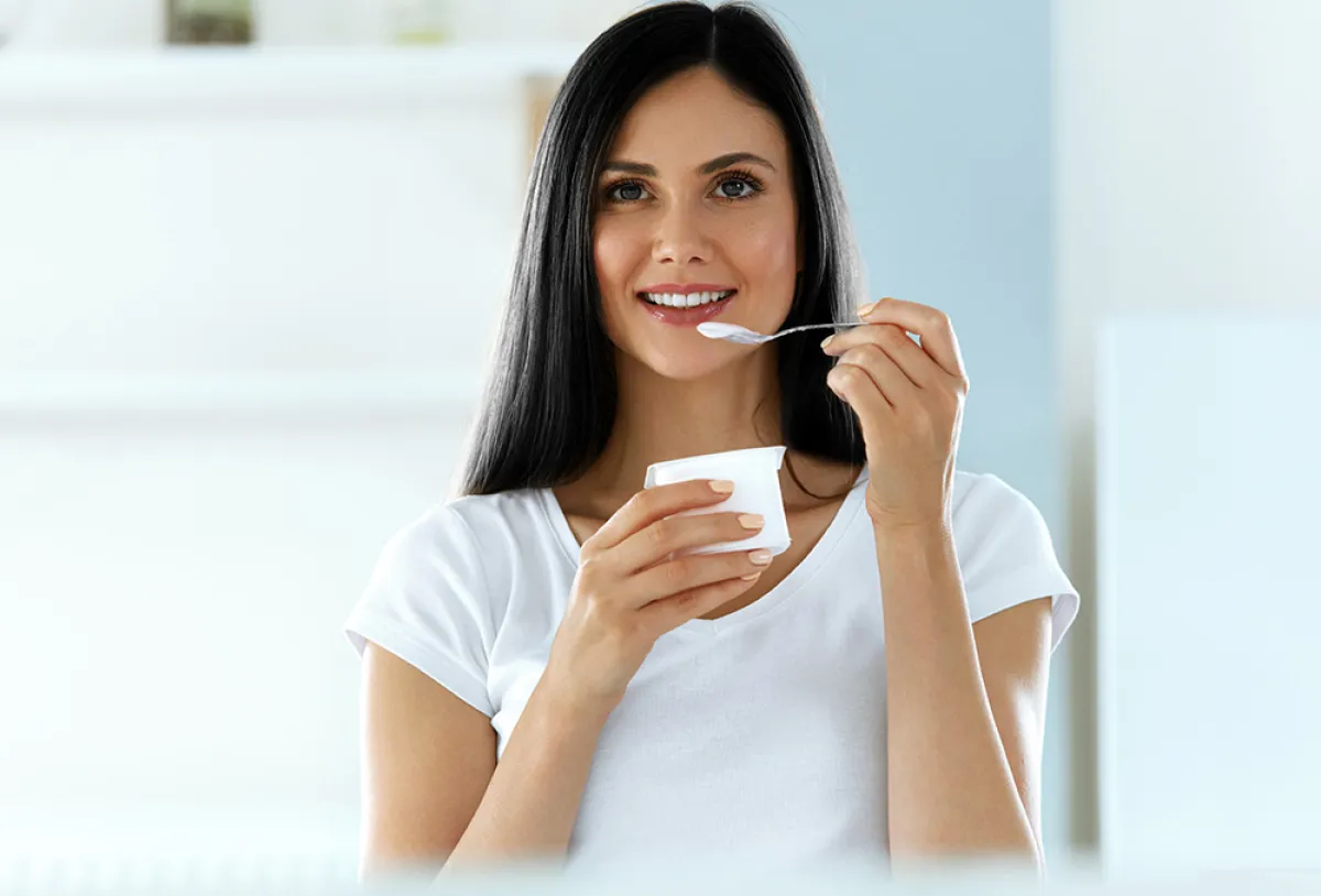 - الزبادي، هو وجبة خفيفة ممتازة وتمنحك الطاقة طوال اليوم، من خلال الكربوهيدرات في اللبن، كما يحتوي الزبادي على كميات كبيرة من الفيتامينات B2 وB12. التي تشارك في وظائف الخلايا.