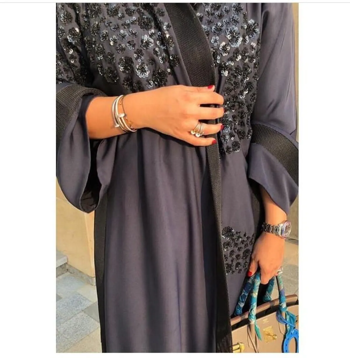 اللون الكحلي الزهري من أكثر الدرجات الرائجة لموسم ربيع وصيف 2019، يمكنكِ التألق به كهذه العباية من Wardah Abaya وردة عبايه، مناسبة لطلالتكِ طوال اليوم، يمكنكِ تنسيقها مع حجاب أبيض قطني، وشنطة كبيرة الحجم، أثناء ذهابكِ إلى العمل، أو لإفطار بسيط مع الصديقات، مع شنطة ميني وكعب قصير قليلًا.
