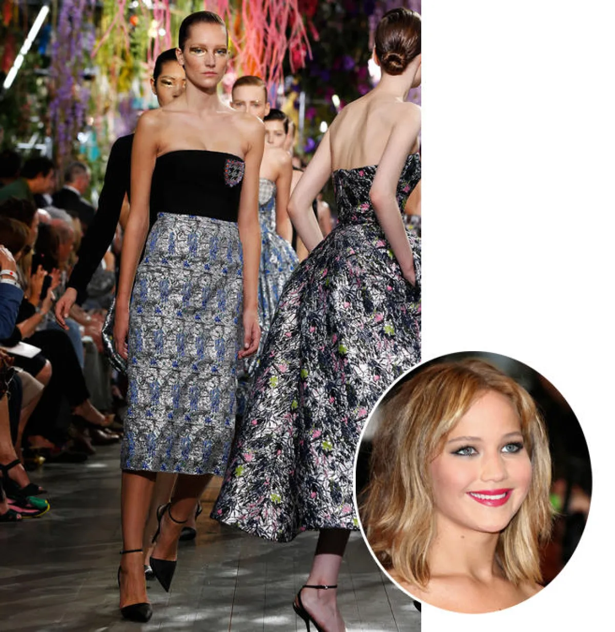 • وقد اخترنا فستاناً ناعماً باللونين الأسود والميتاليك من "Dior " لإحدى نجمات الدار, وهي الممثِّلة Jennifer Lawrence.