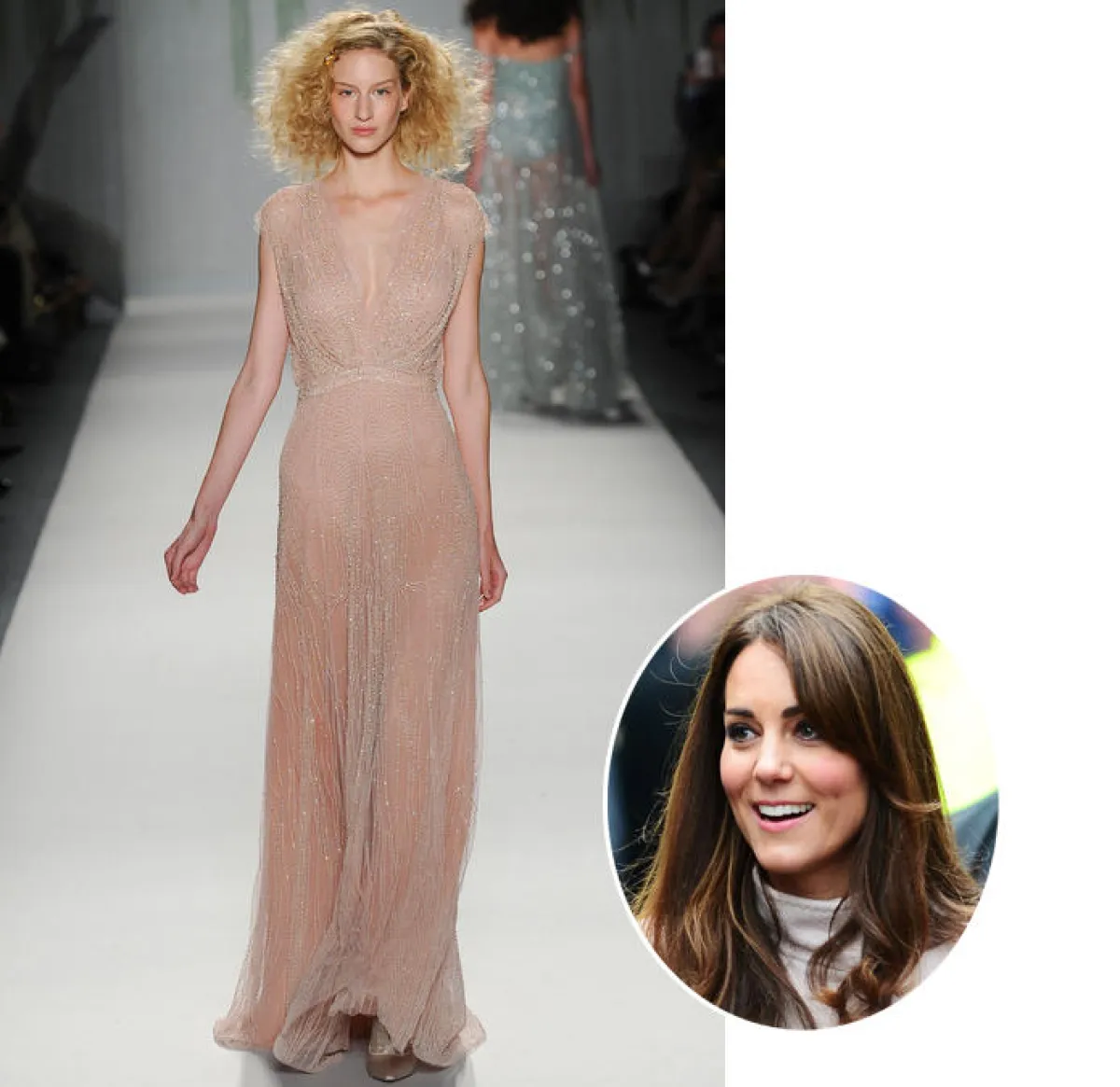 • المصممة Jenny Packham هي المفضَّلة لدى دوقة كامبريدج Kate Middleton، وقد شاهدنا في مجموعتها لهذا الموسم فساتين عديدة تناسب إطلالاتها، اخترنا منها فستاناً بتصميم جميل ولون ناعم للدوقة. فهل يناسبها برأيكِ؟