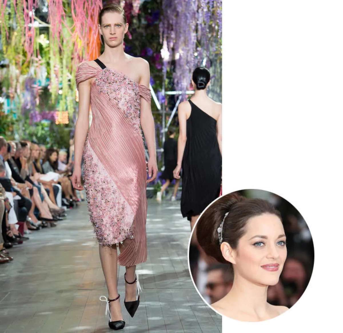 • النَّجمة Marion Cotillard من الوجوه الإعلانيَّة لدار أزياء "Dior"، ومن النَّادر أن نراها ترتدي تصميماً يحمل توقيع مصممين آخرين، بناءً على هذا اخترنا لها فستاناً ورديّاً أنيقاً من مجموعة الدار لهذا الموسم.